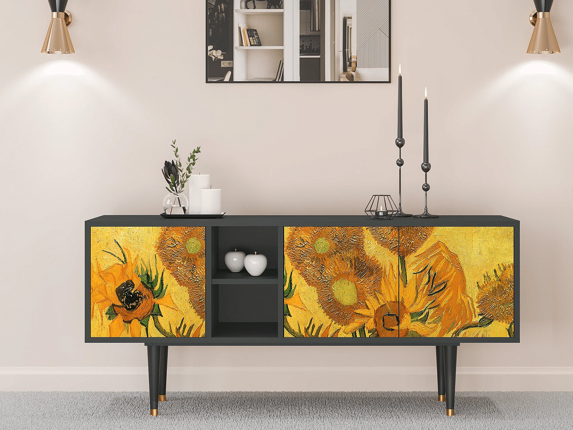 Meuble TV - 150х69х41 cm - T5 - Sunflowers, Anthracite