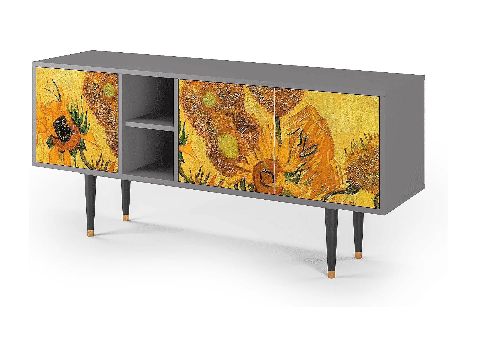 Meuble TV - 150х69х41 cm - T5 - Sunflowers, Gris
