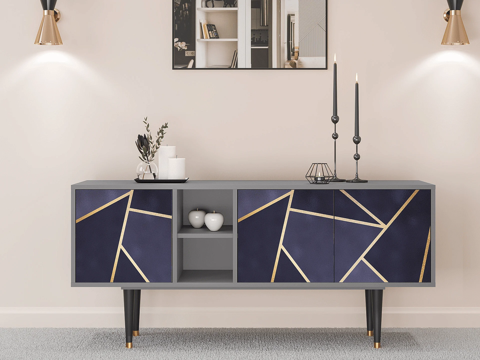 Meuble TV - 150х69х41 cm - T5 - The Amethyst, Gris