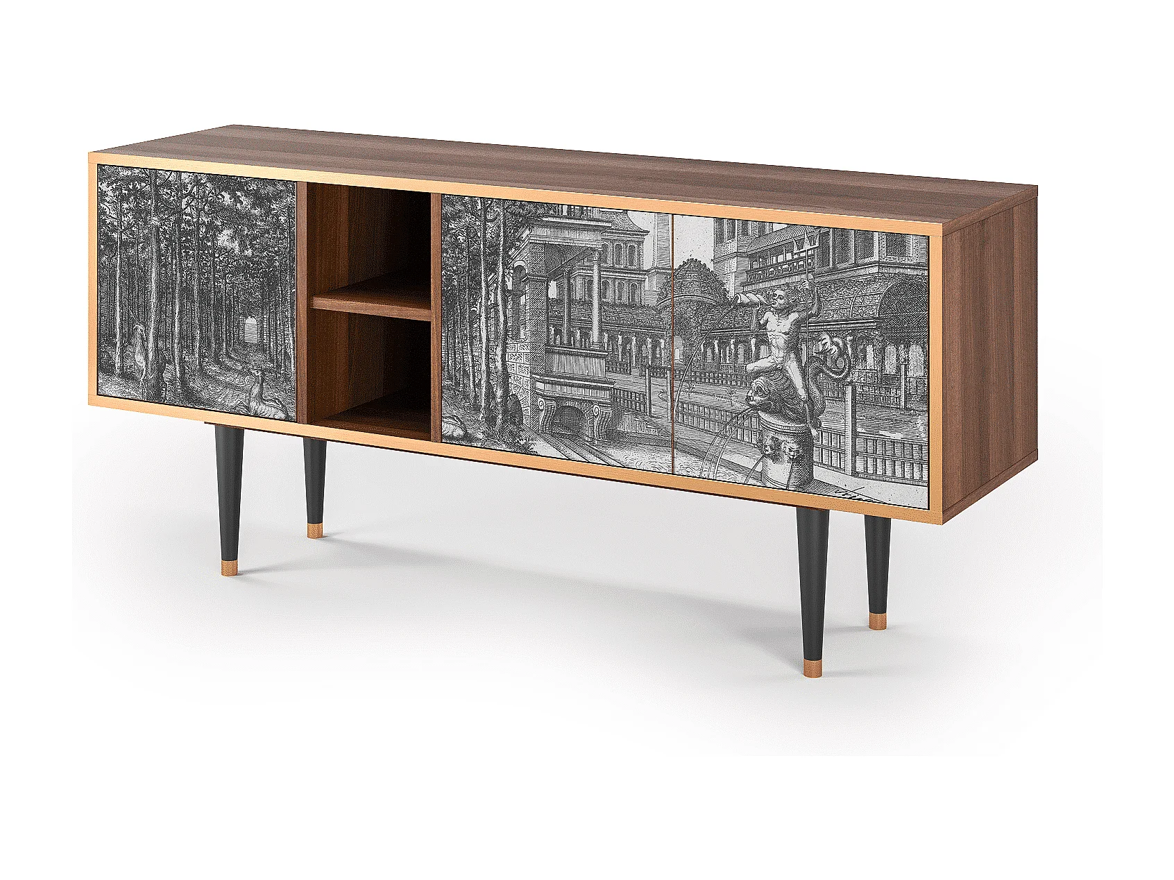 Meuble TV - 150х69х41 cm - T5 - View of the Piazza, Noyer