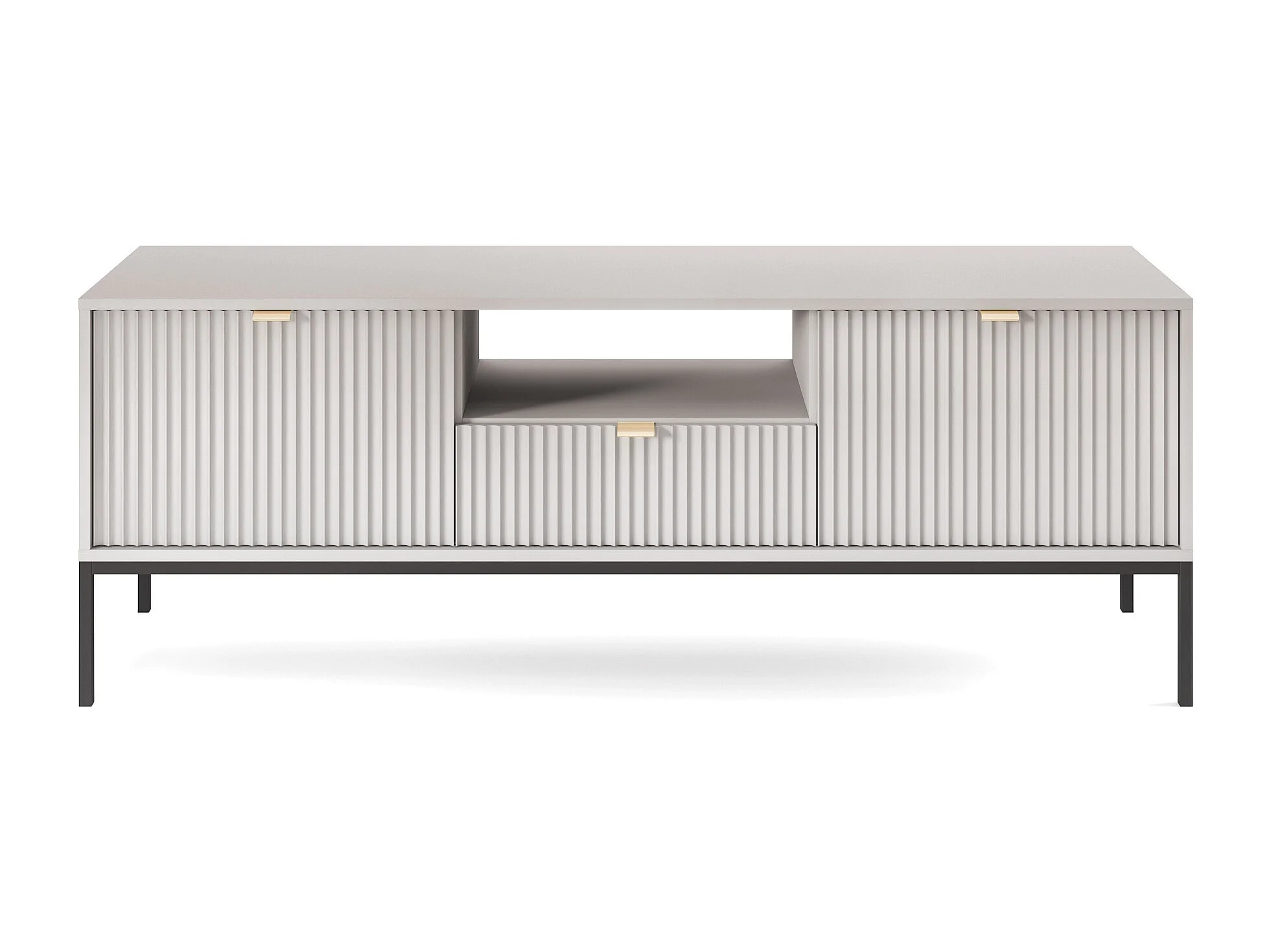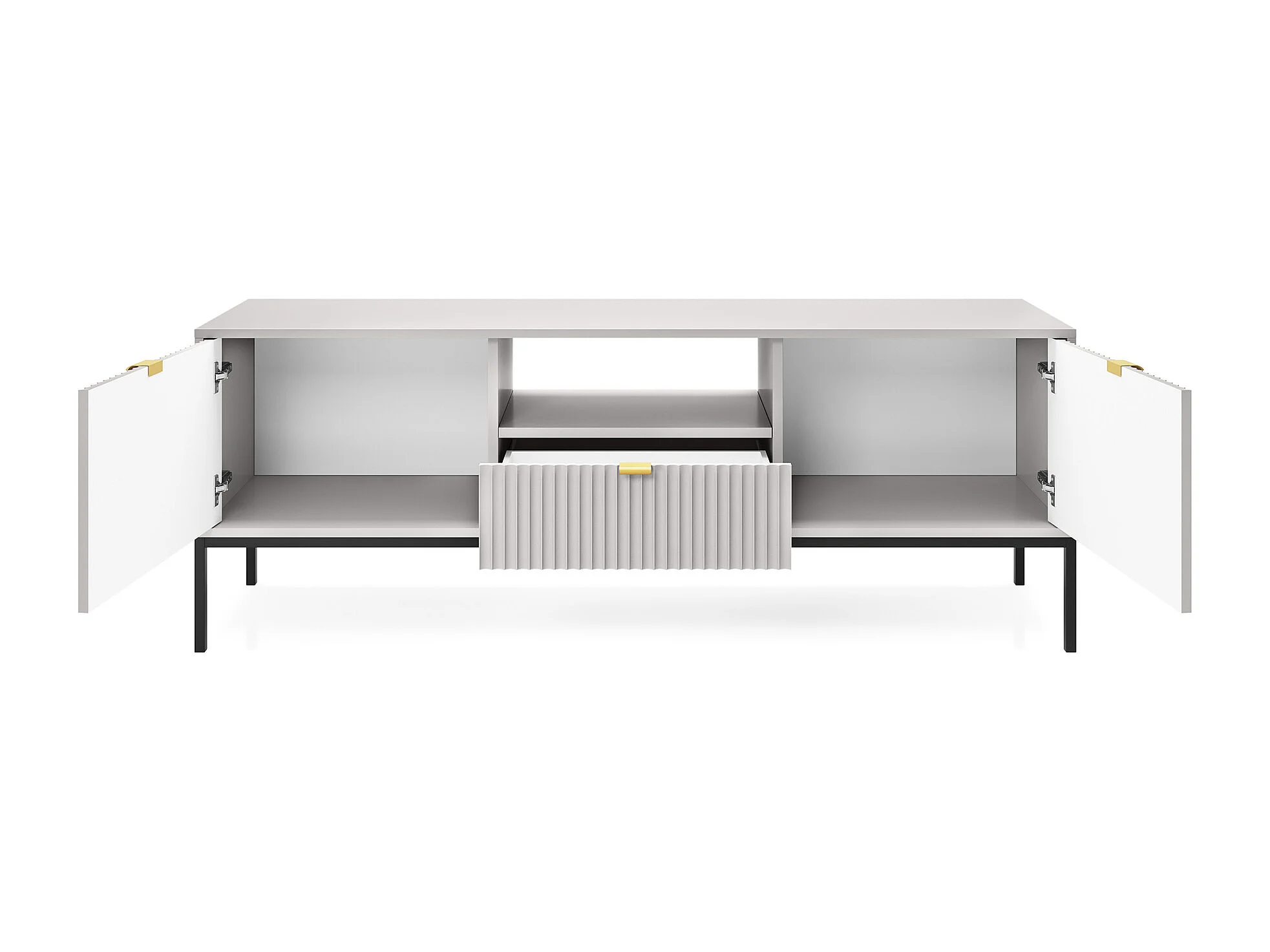 Meuble TV - 154 cm - gris avec pieds noires - VELLORE