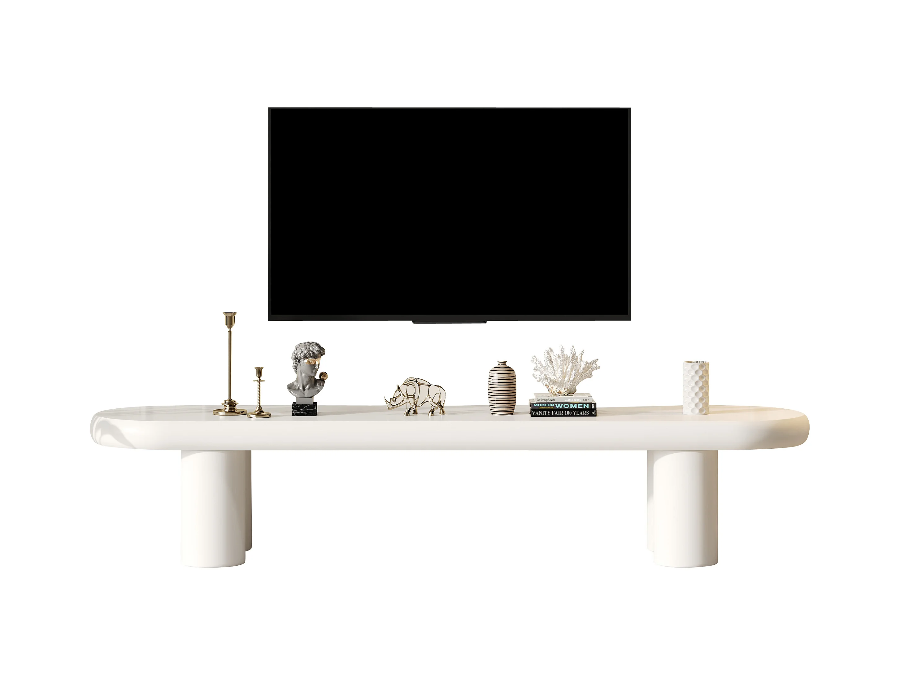 Meuble TV - 160 x 40 x 40 cm - avec 4 pieds - adapté aux téléviseurs jusqu'à 65 pouces - MDF - blanc
