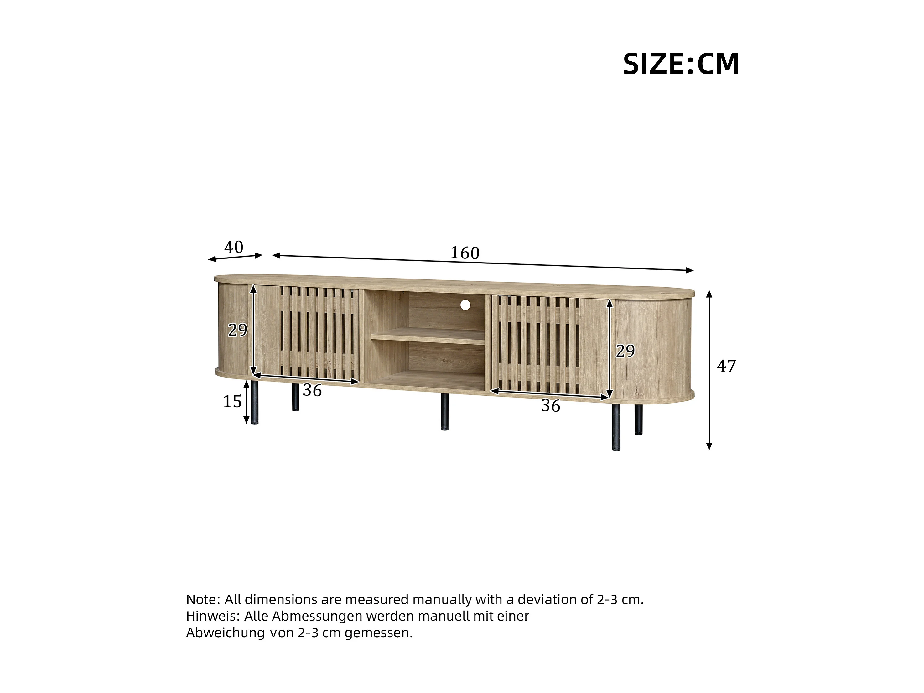 Meuble TV 160 x 40 x 47 cm avec 2 portes - Couleur bois naturel