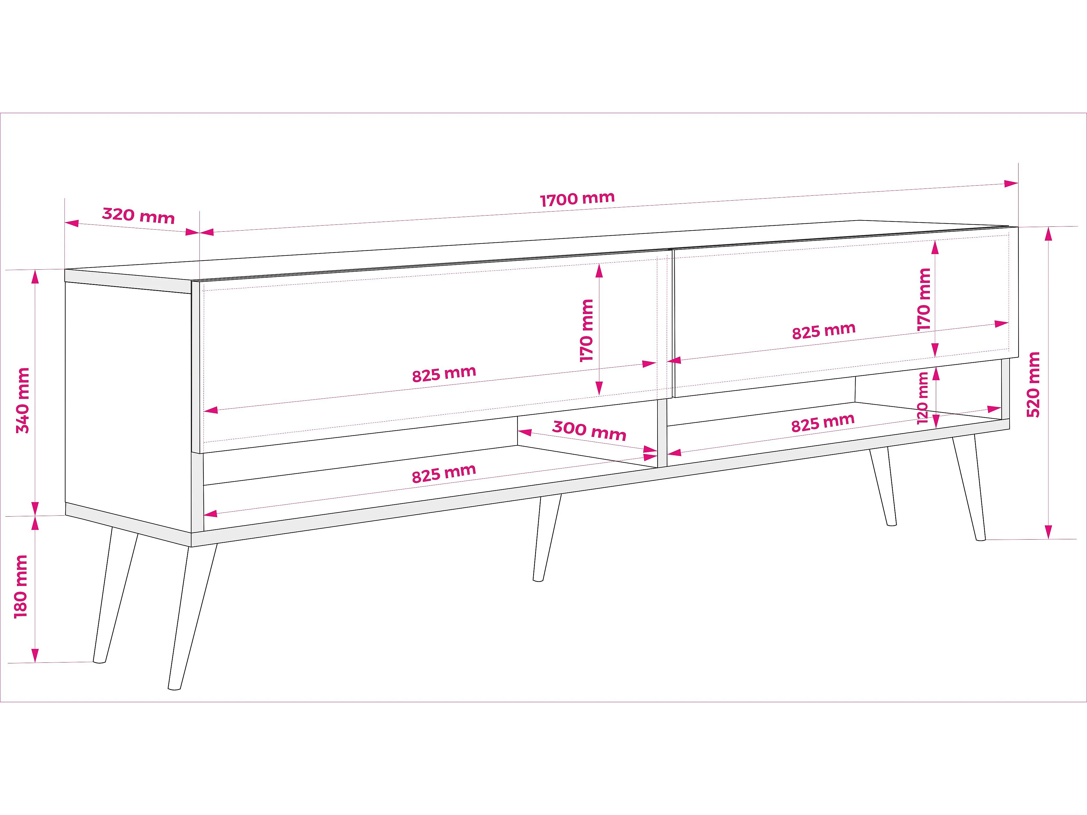 Meuble TV 170 cm Chêne Craft, pieds obliques noirs, 170 x 32 x 52 cm