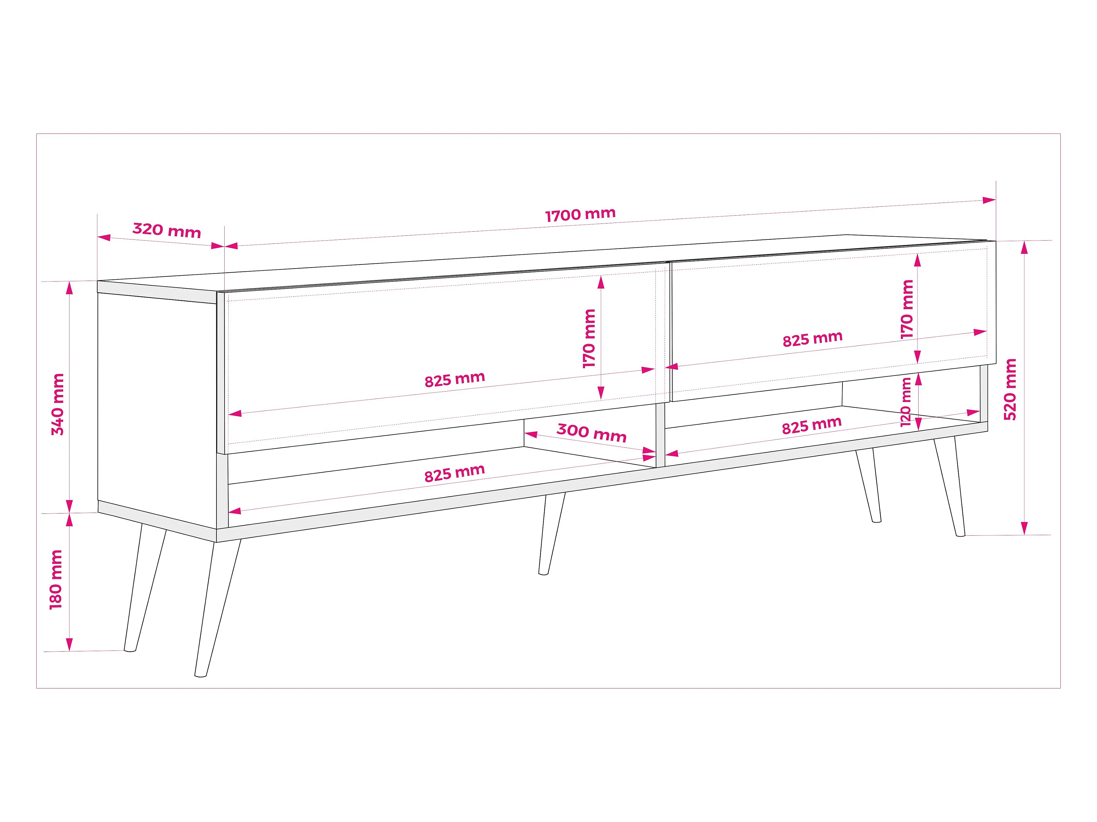 Meuble TV 170 cm Noir Mat, pieds obliques noirs, 170 x 32 x 52 cm