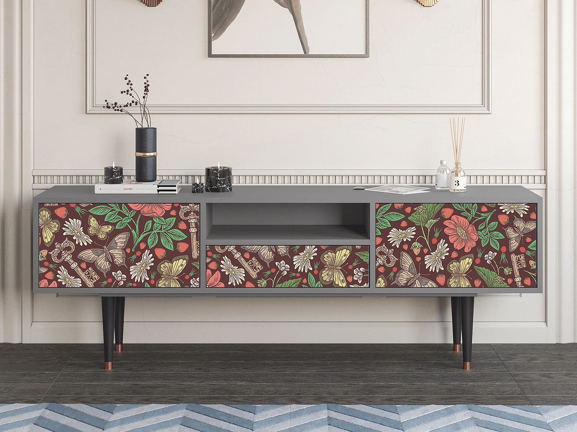 Meuble TV - 170х59х41 cm - T6 - Alice in Wonderland, Gris