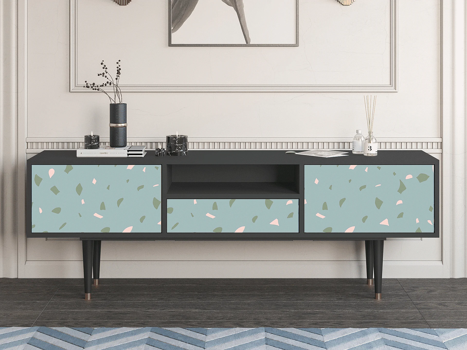 Meuble TV - 170х59х41 cm - T6 - Blue Drops, Anthracite