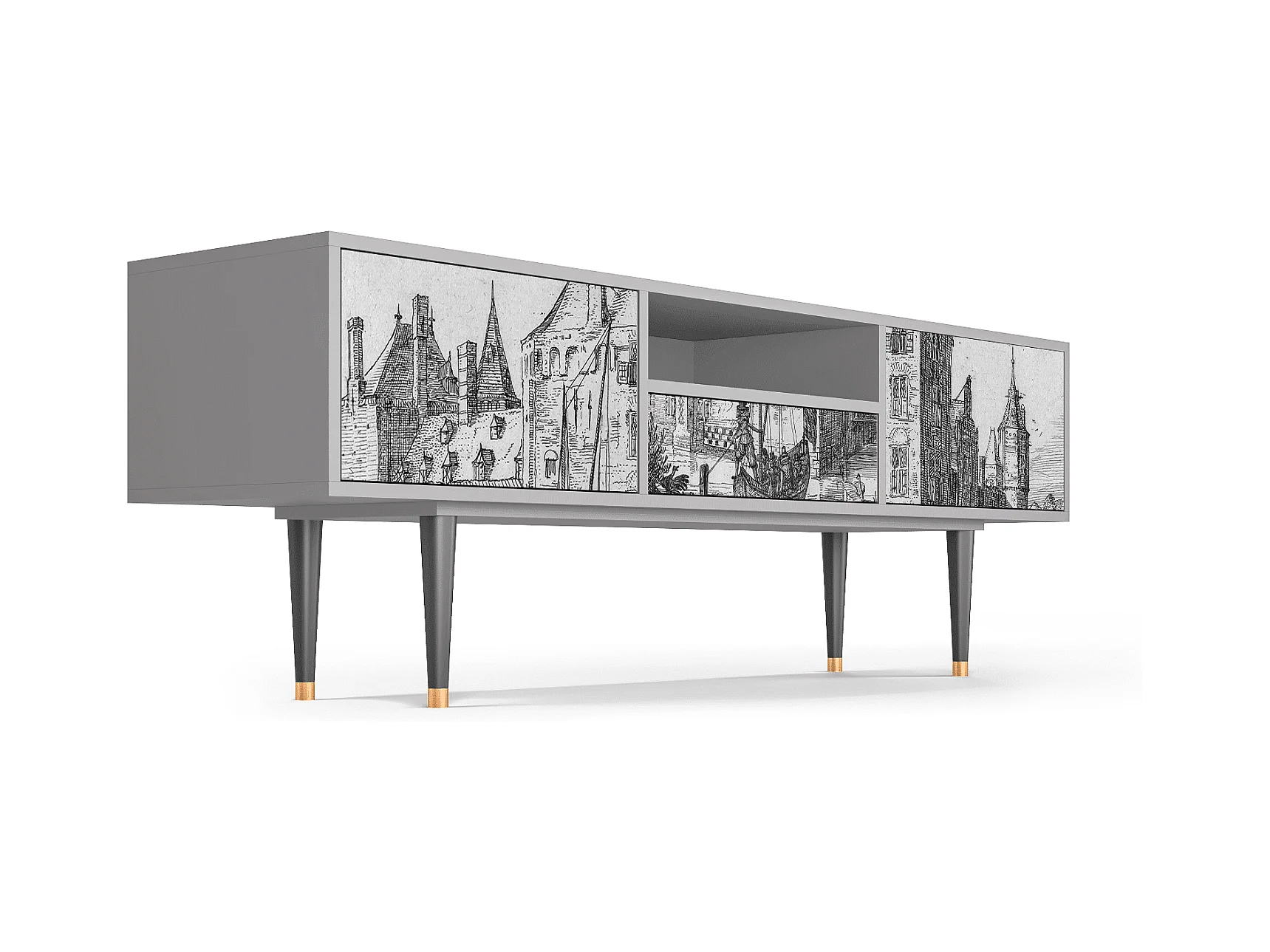 Meuble TV - 170х59х41 cm - T6 - Castle with Bridge, Gris