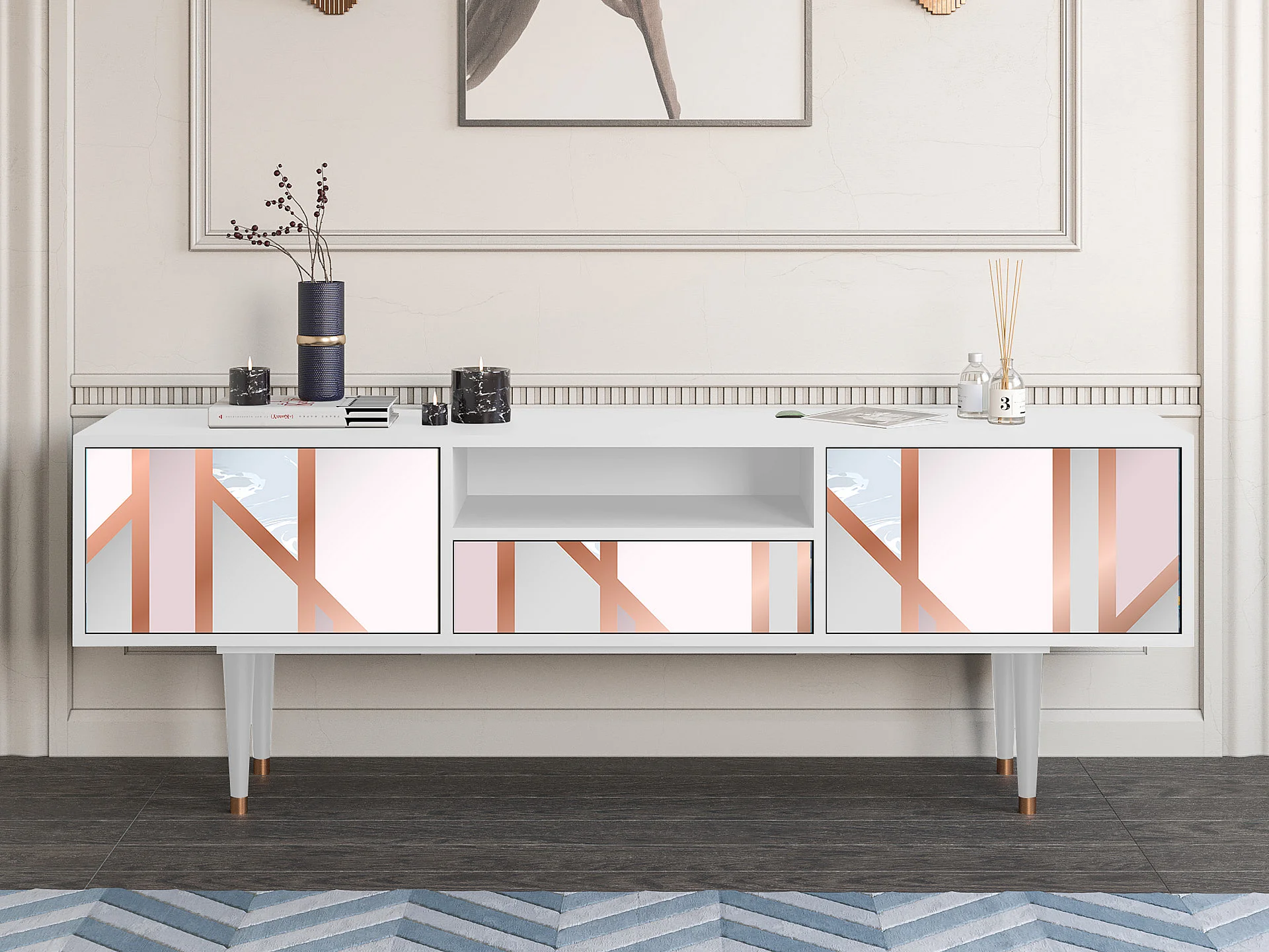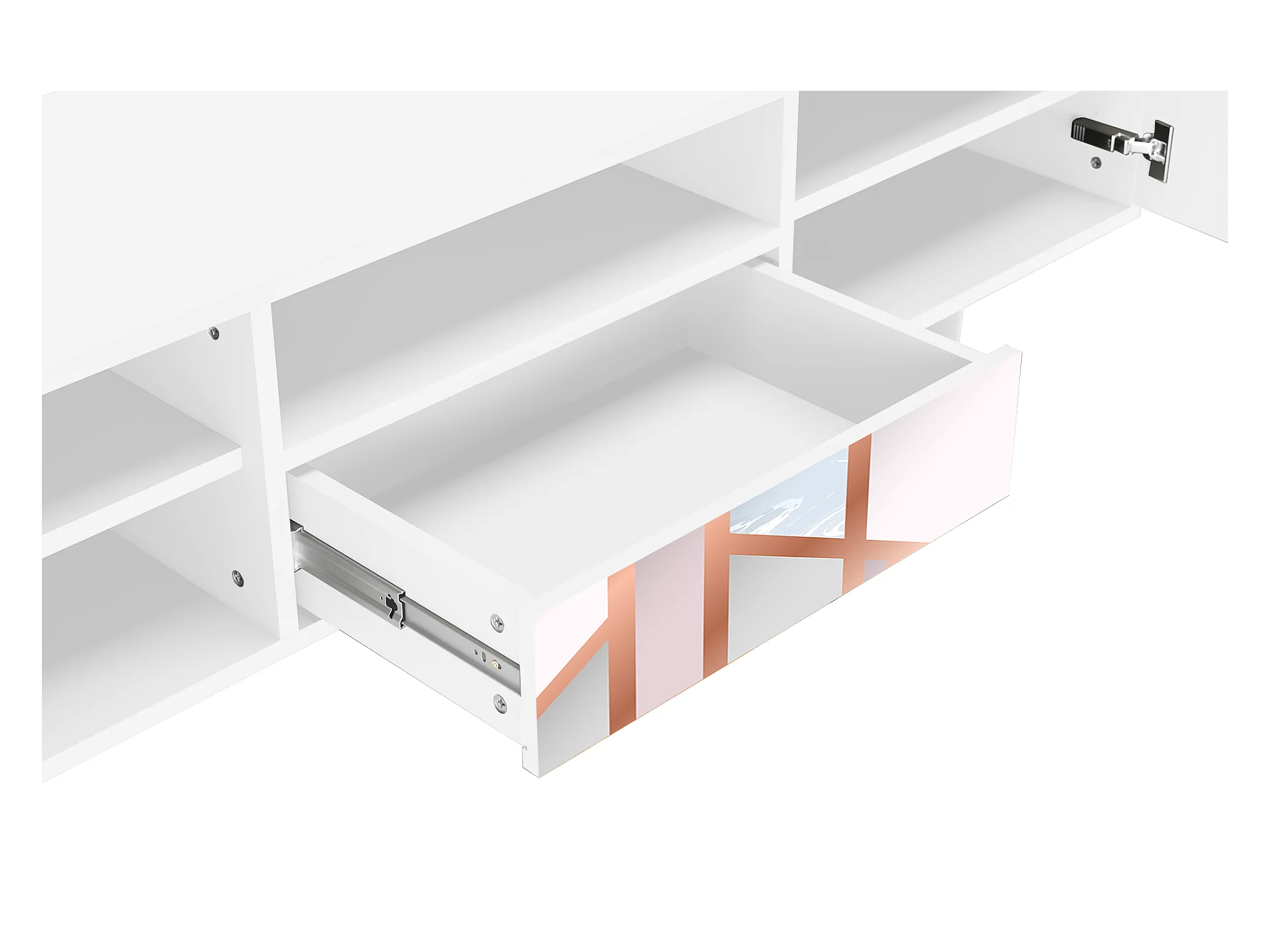 Meuble TV - 170х59х41 cm - T6 - Champagne Story, Blanc