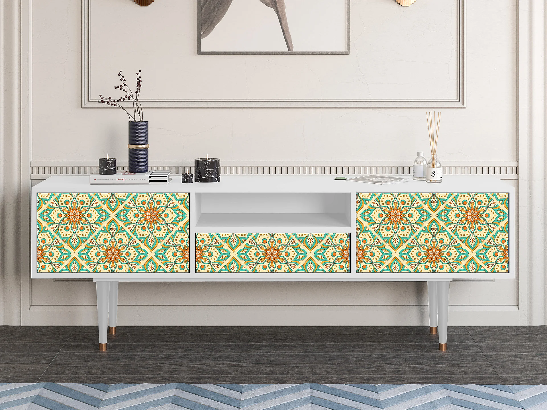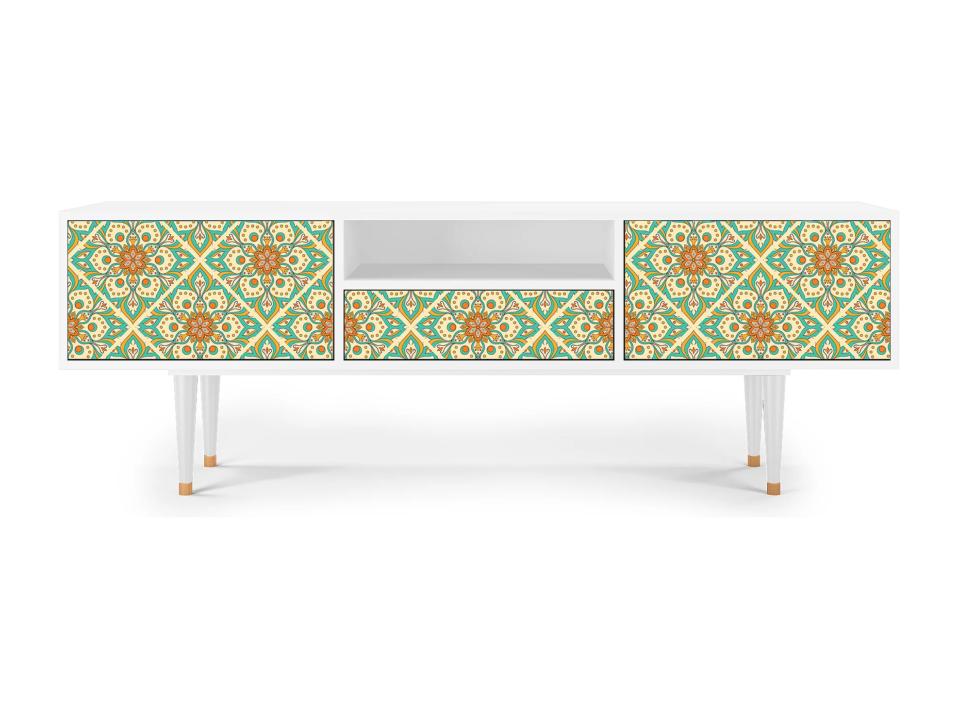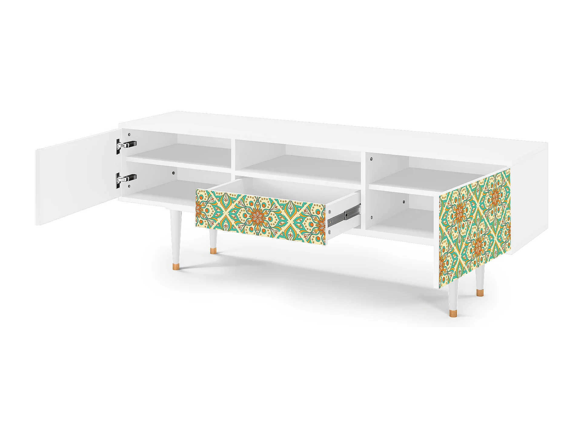 Meuble TV - 170х59х41 cm - T6 - Hindu Daisy, Blanc