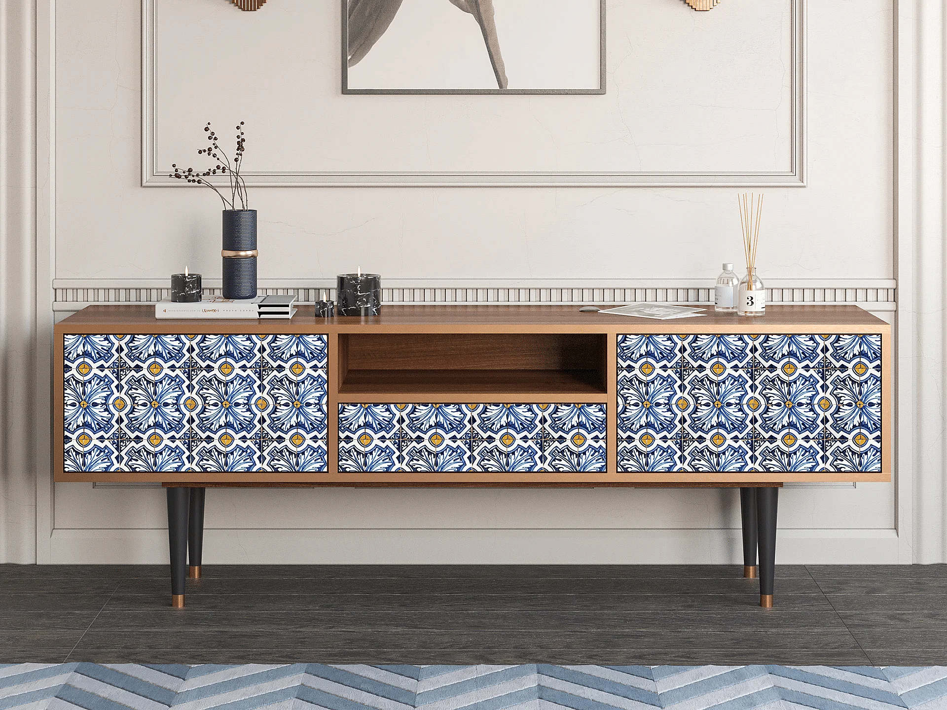 Meuble TV - 170х59х41 cm - T6 - Lovely Cornflowers, Noyer