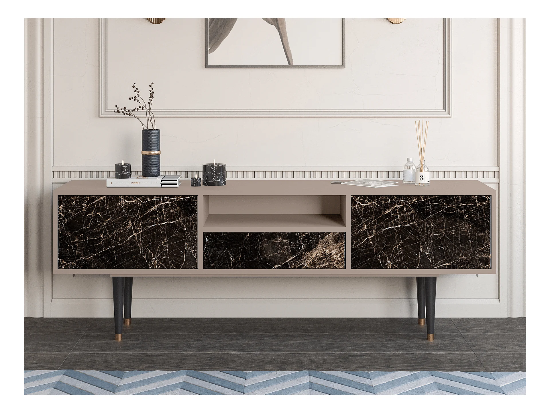 Meuble TV - 170х59х41 cm - T6 - Night Abyss, Latte