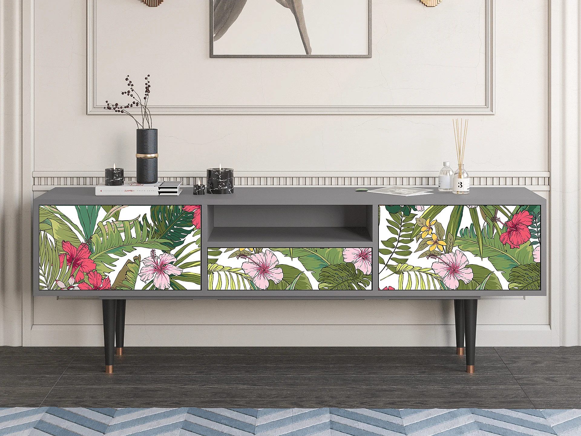 Meuble TV - 170х59х41 cm - T6 - Verdant Tropics, Gris