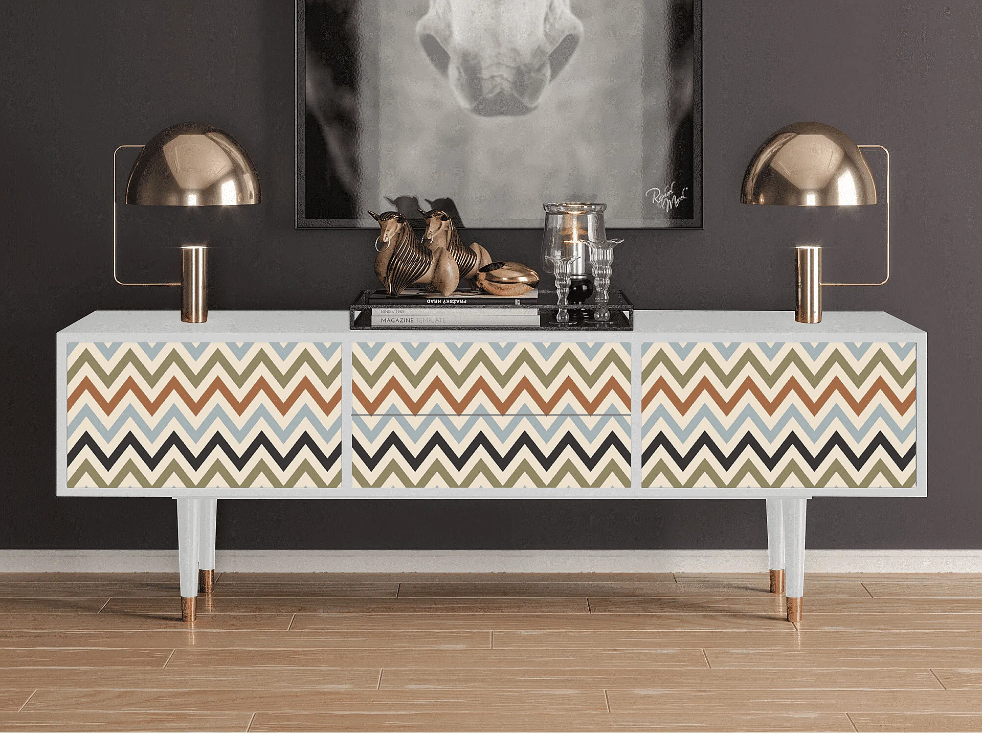 Meuble TV - 170х59х48 cm - T4 - Green Wheat Fields, Blanc