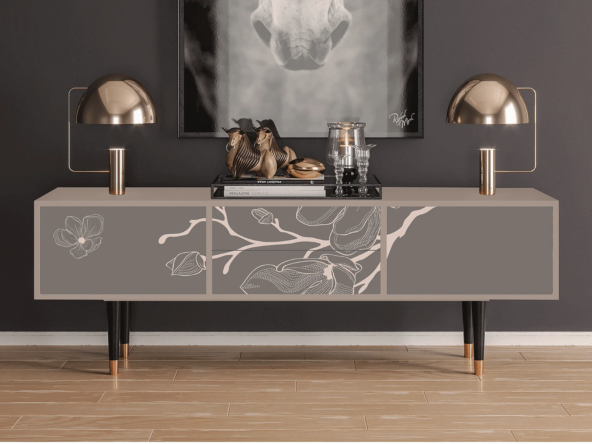 Meuble TV - 170х59х48 cm - T4 - Cherry Blossom, Latte
