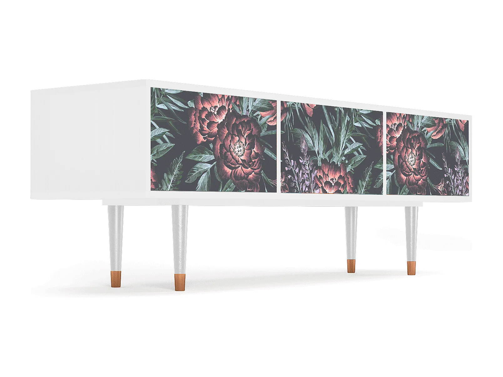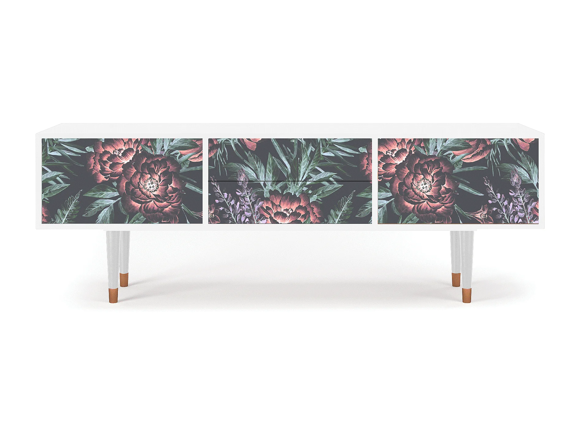 Meuble TV - 170х59х48 cm - T4 - Dark Peonies, Blanc