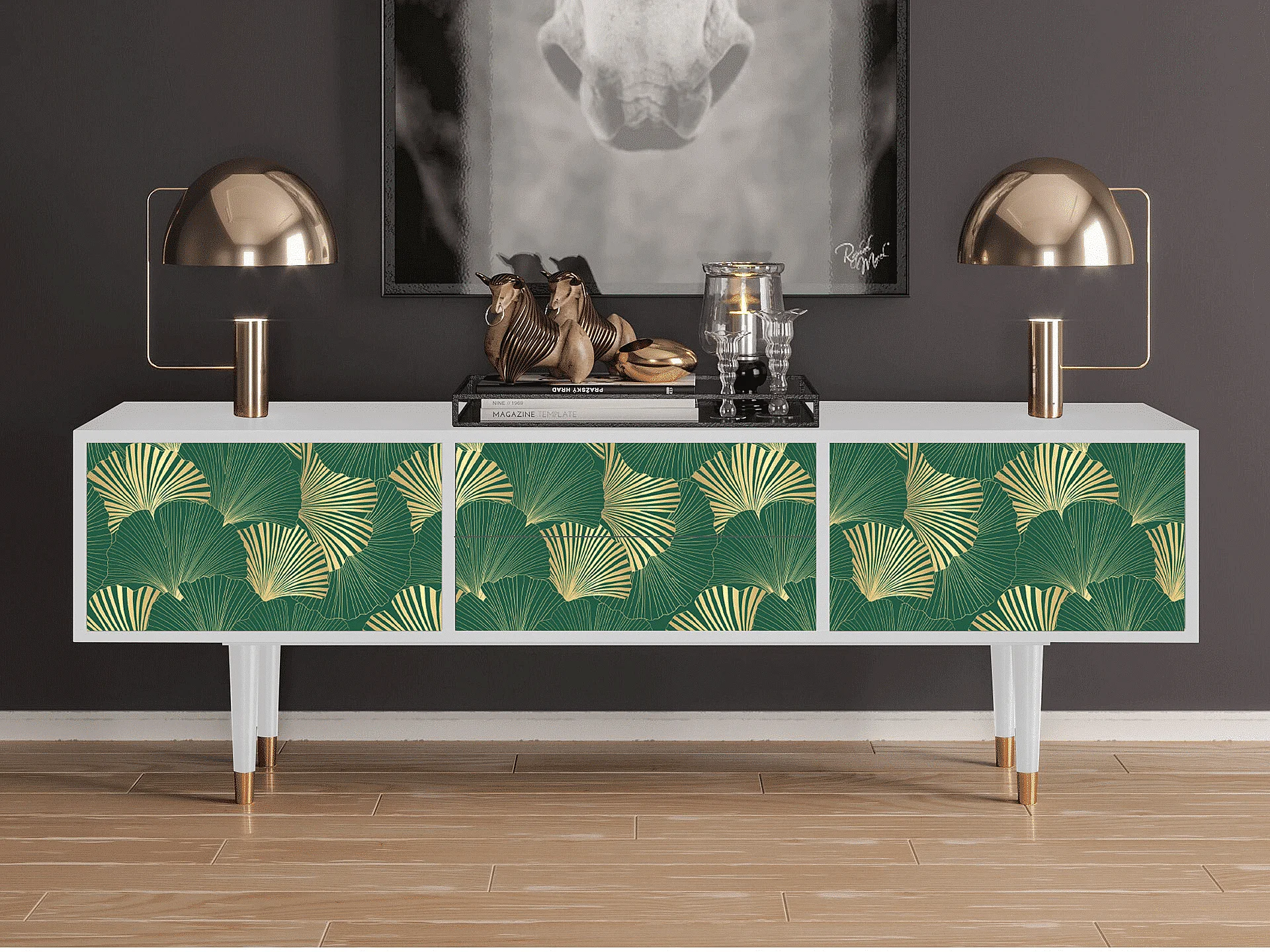 Meuble TV - 170х59х48 cm - T4 - Gold Ginkgo, Blanc