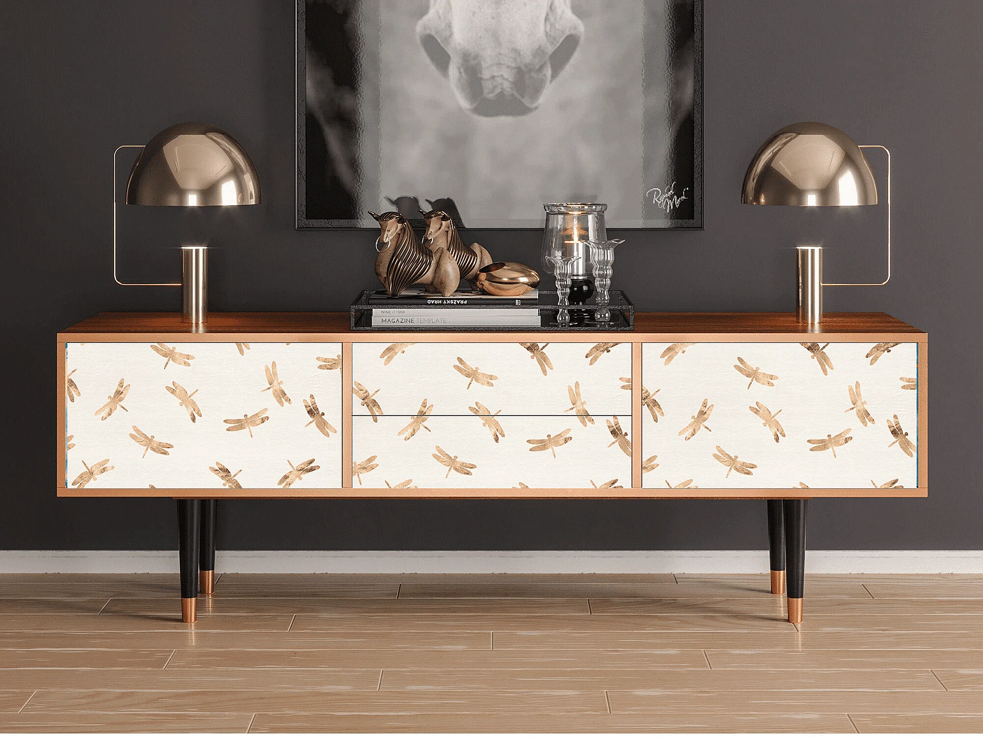 Meuble TV - 170х59х48 cm - T4 - Nude Dragonflies, Noyer