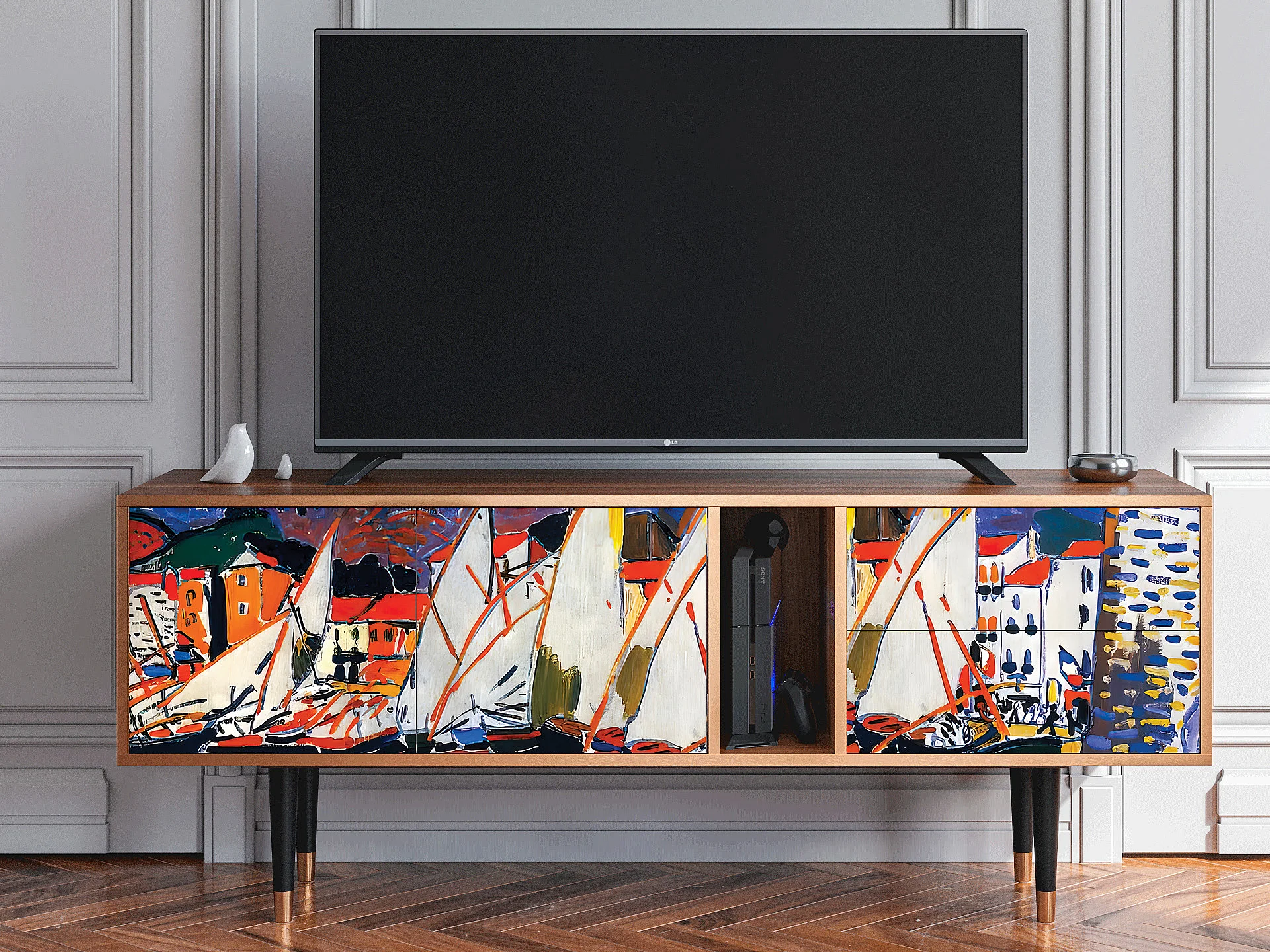 Meuble TV - 170х69х48 cm - T1 - Le Séchage des voiles , Noyer
