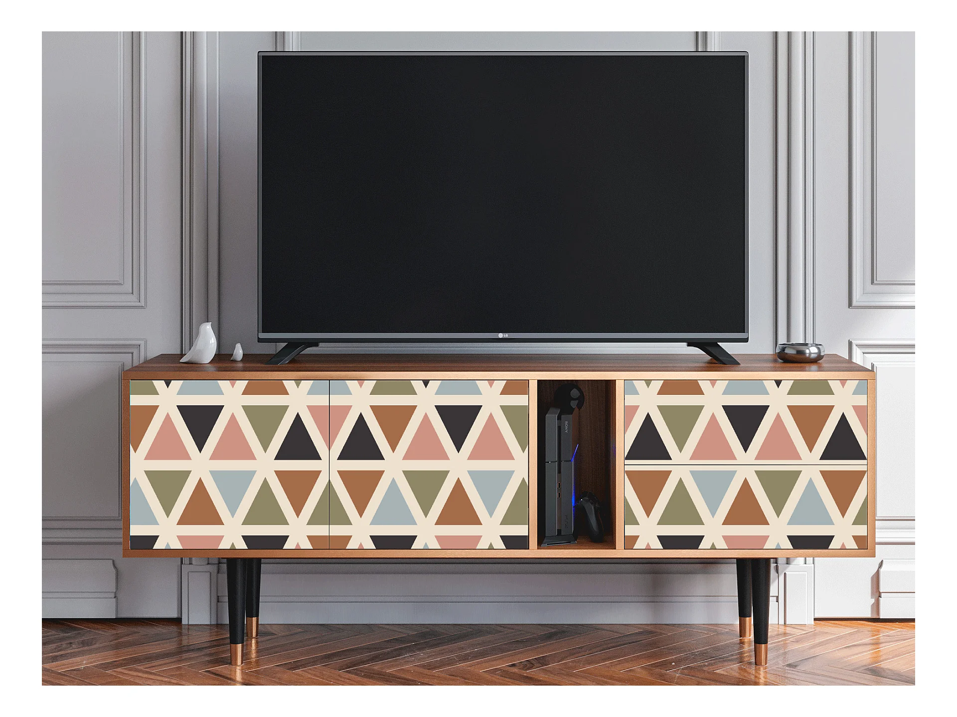 Meuble TV - 170х69х48 cm - T1 - Royal Triangles, Noyer