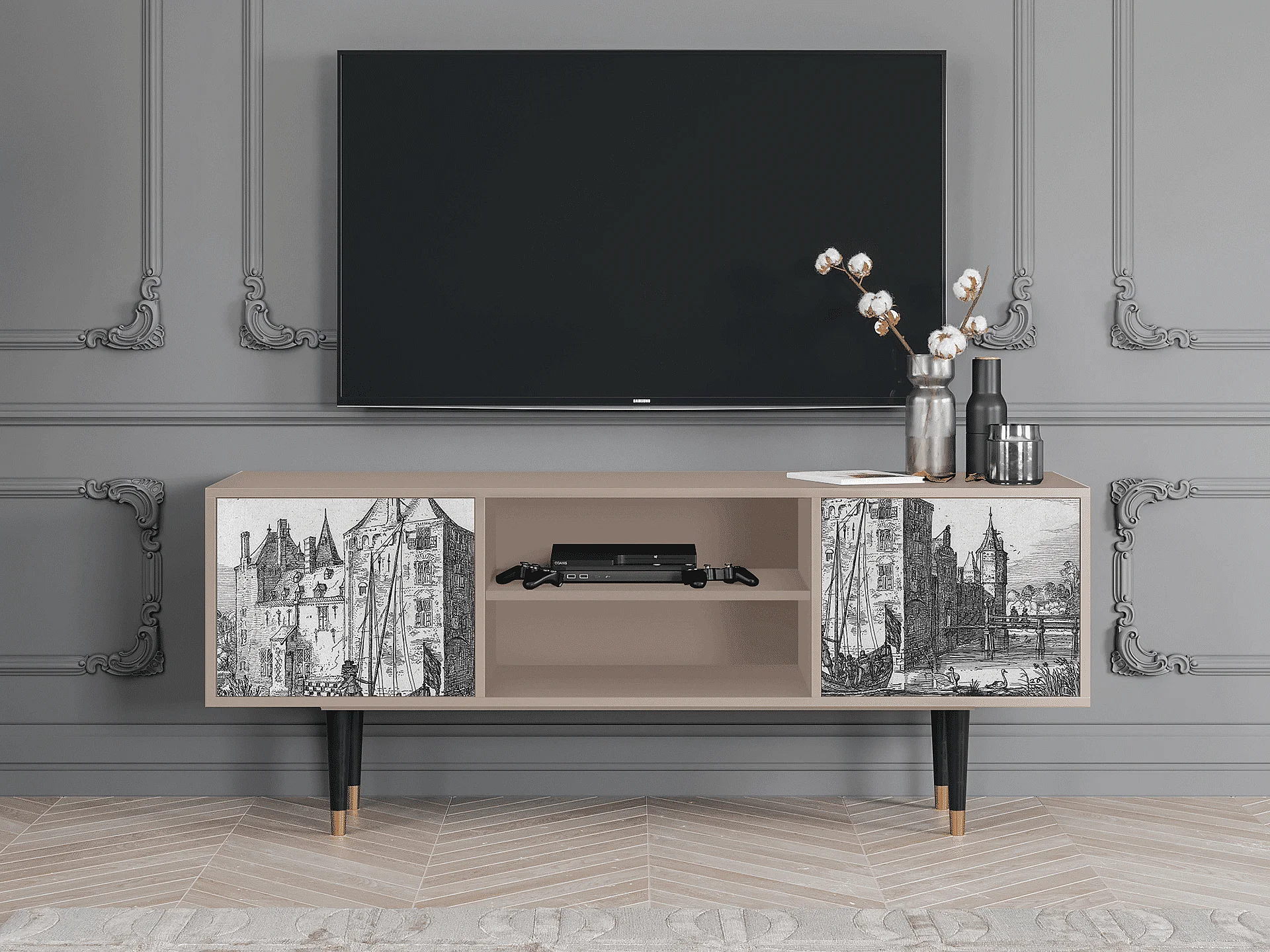 Meuble TV - 170х69х48 cm - T2 - Velvet 1920's, Sable