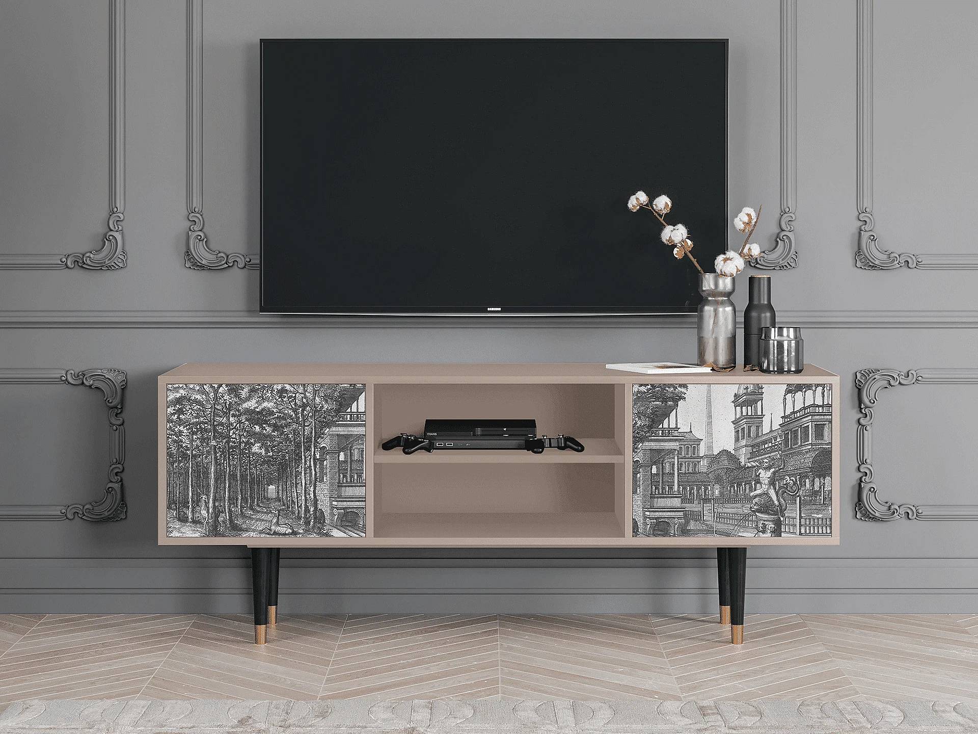 Meuble TV - 170х69х48 cm - T2 - View of the Piazza, Latte