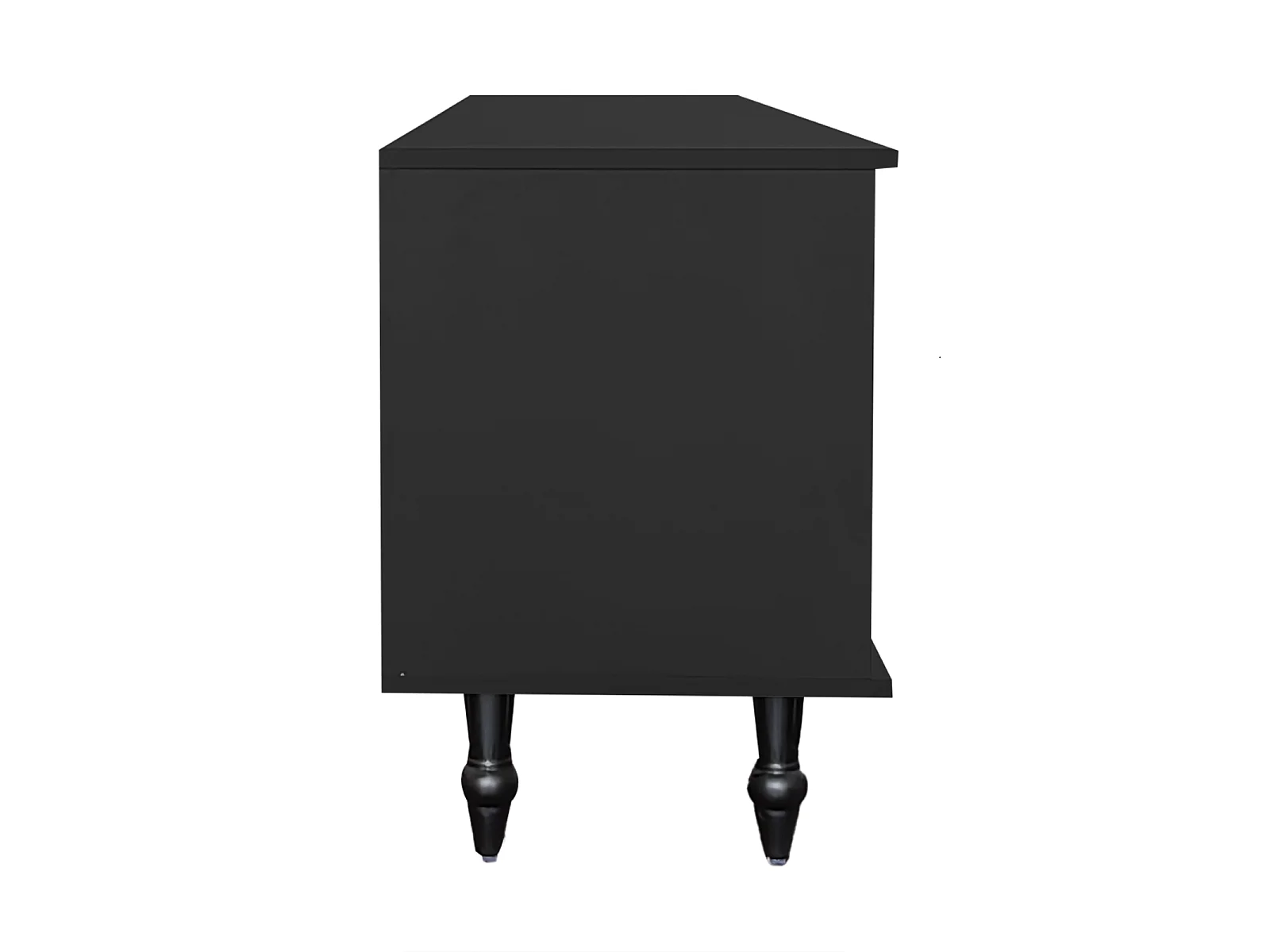 Meuble TV 175cm, avec 4 portes en rotin, 2 tiroirs, Pieds en métal, poignée en métal, style Scandinave, Meuble de salon - Noir