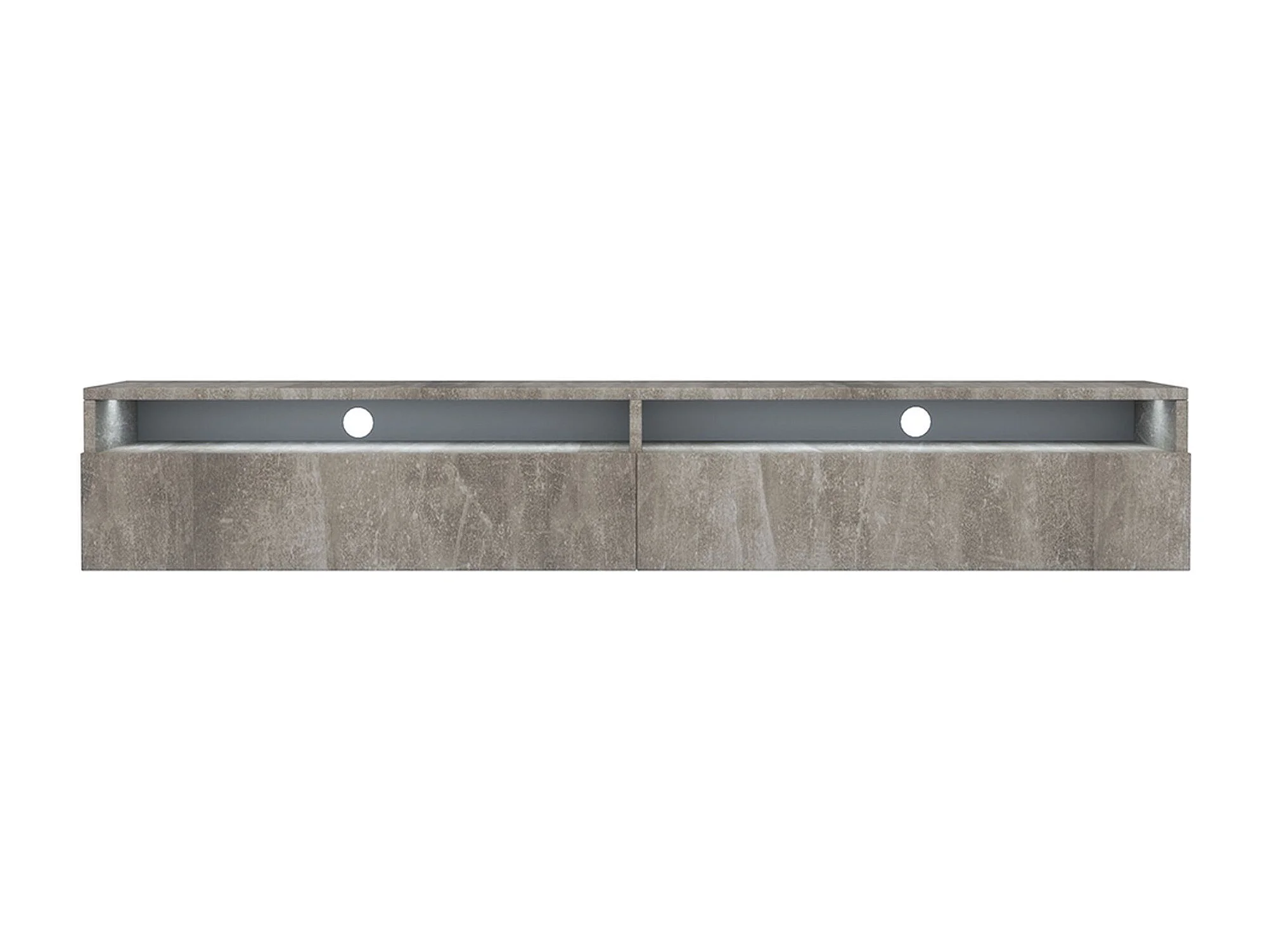Meuble TV - 180 cm - gris béton - 2 niches ouvertes - avec 2 tiroirs - avec LED - REDNAW