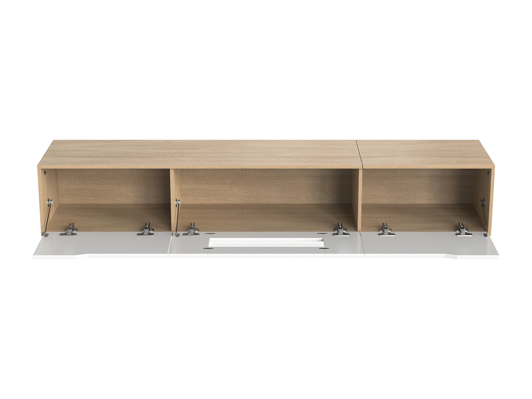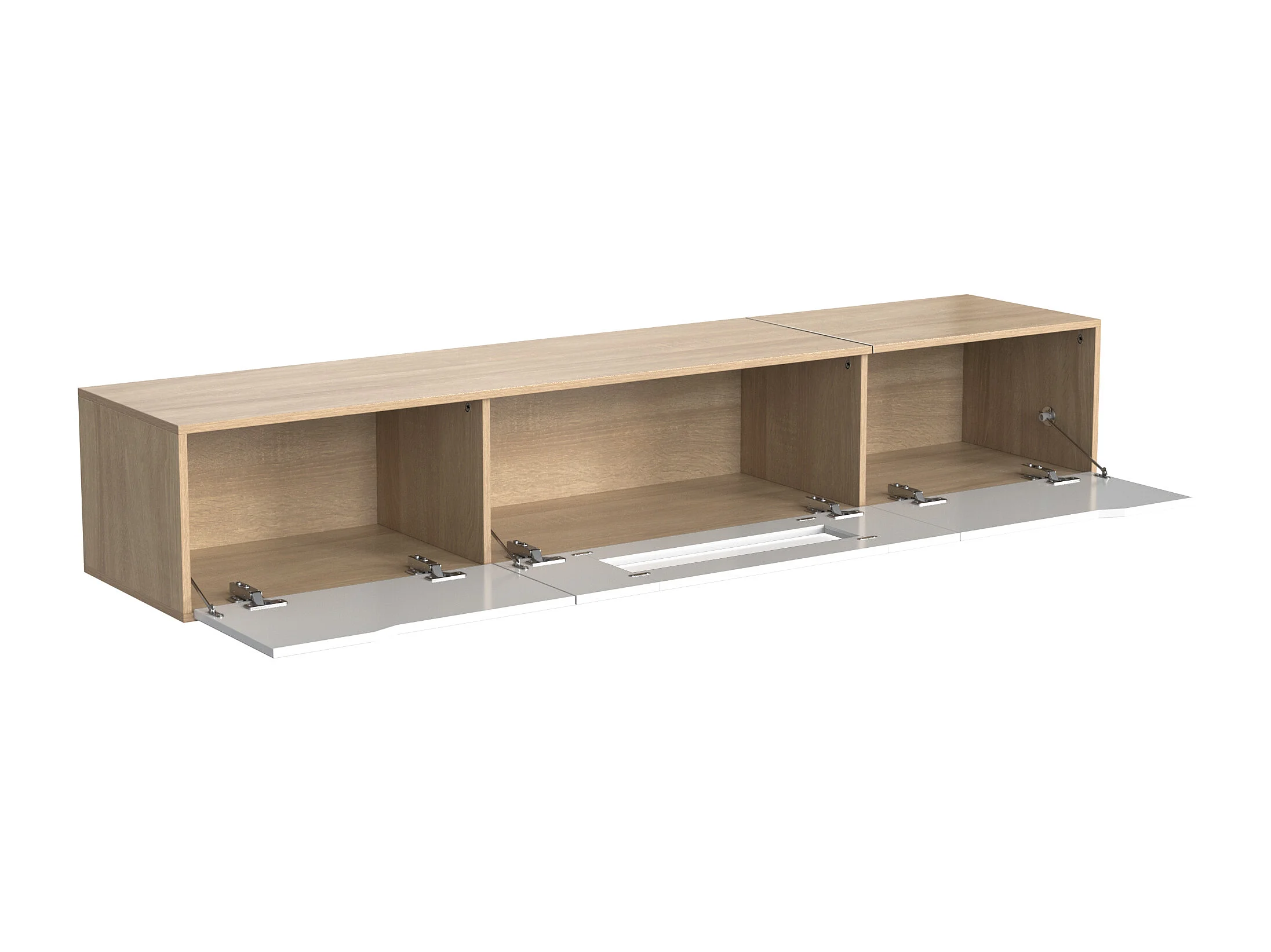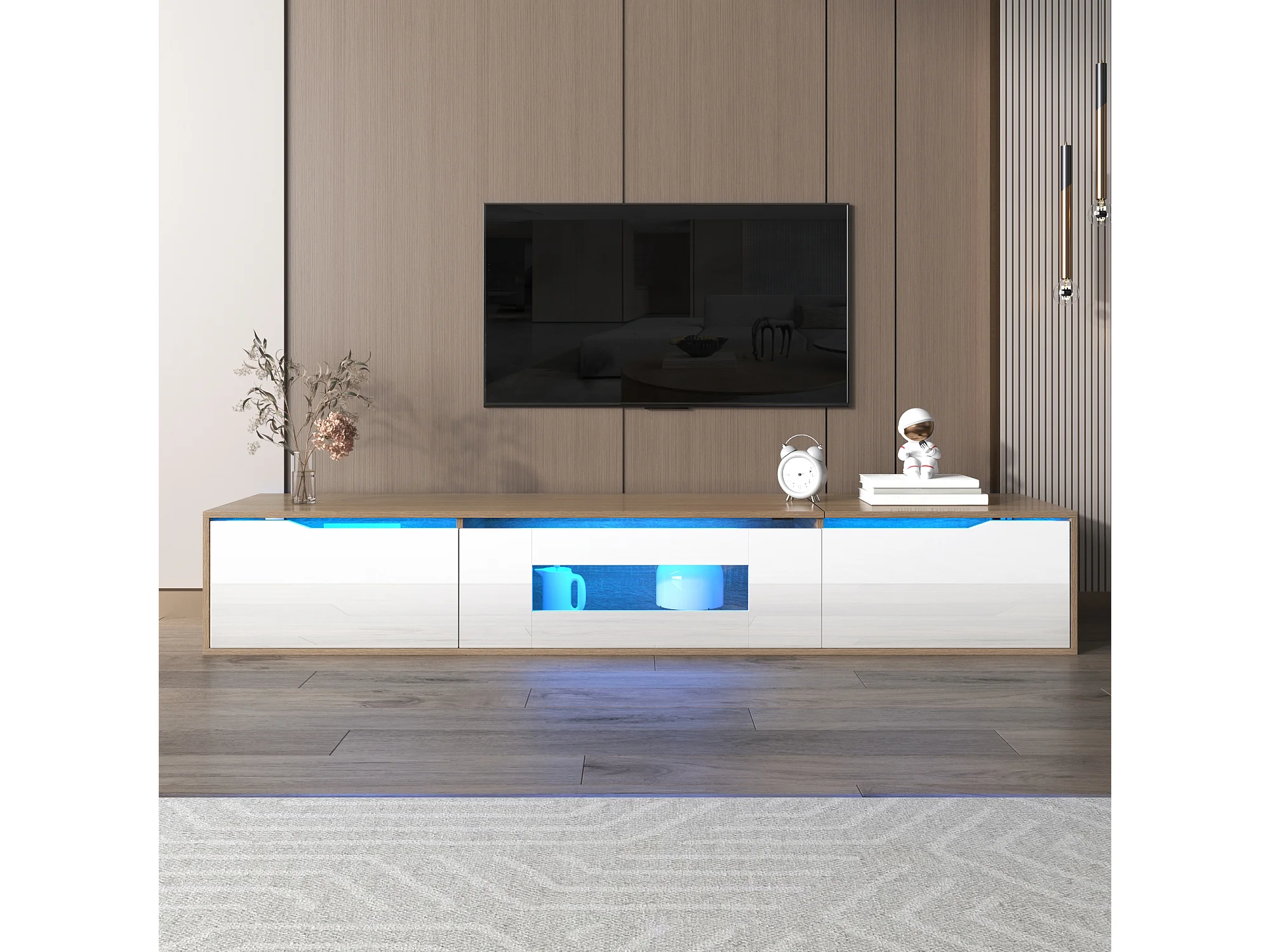 Meuble TV 180x35x30 cm, éclairage LED 16 couleurs, portes rainurées, panneaux de particules, blanc