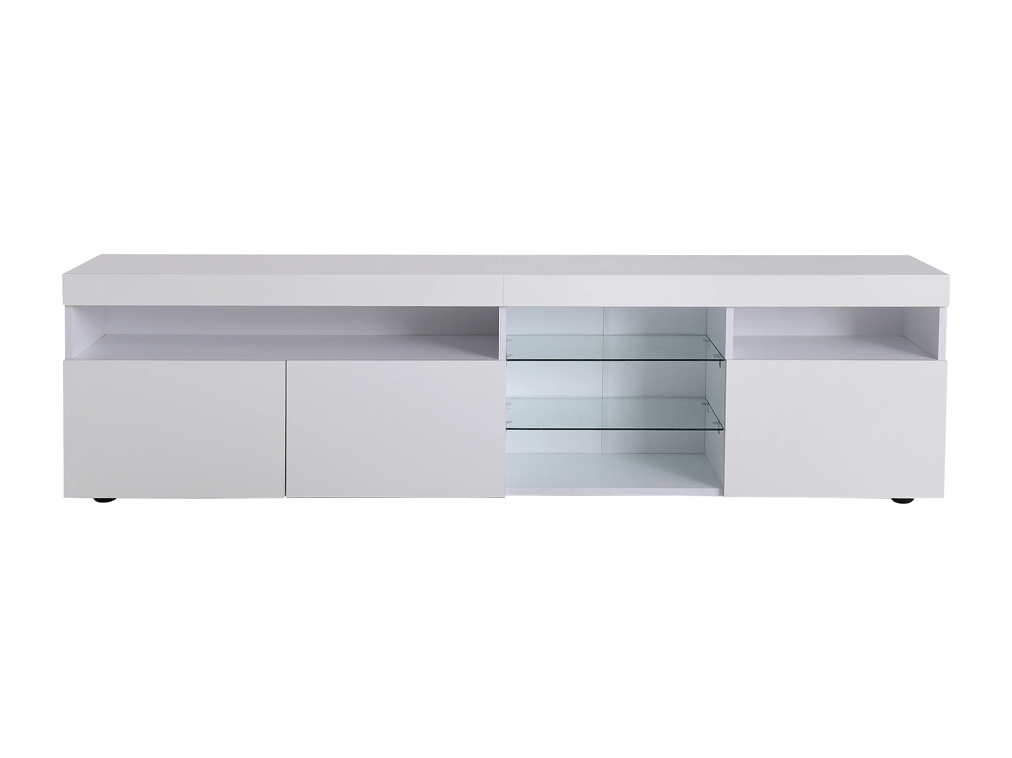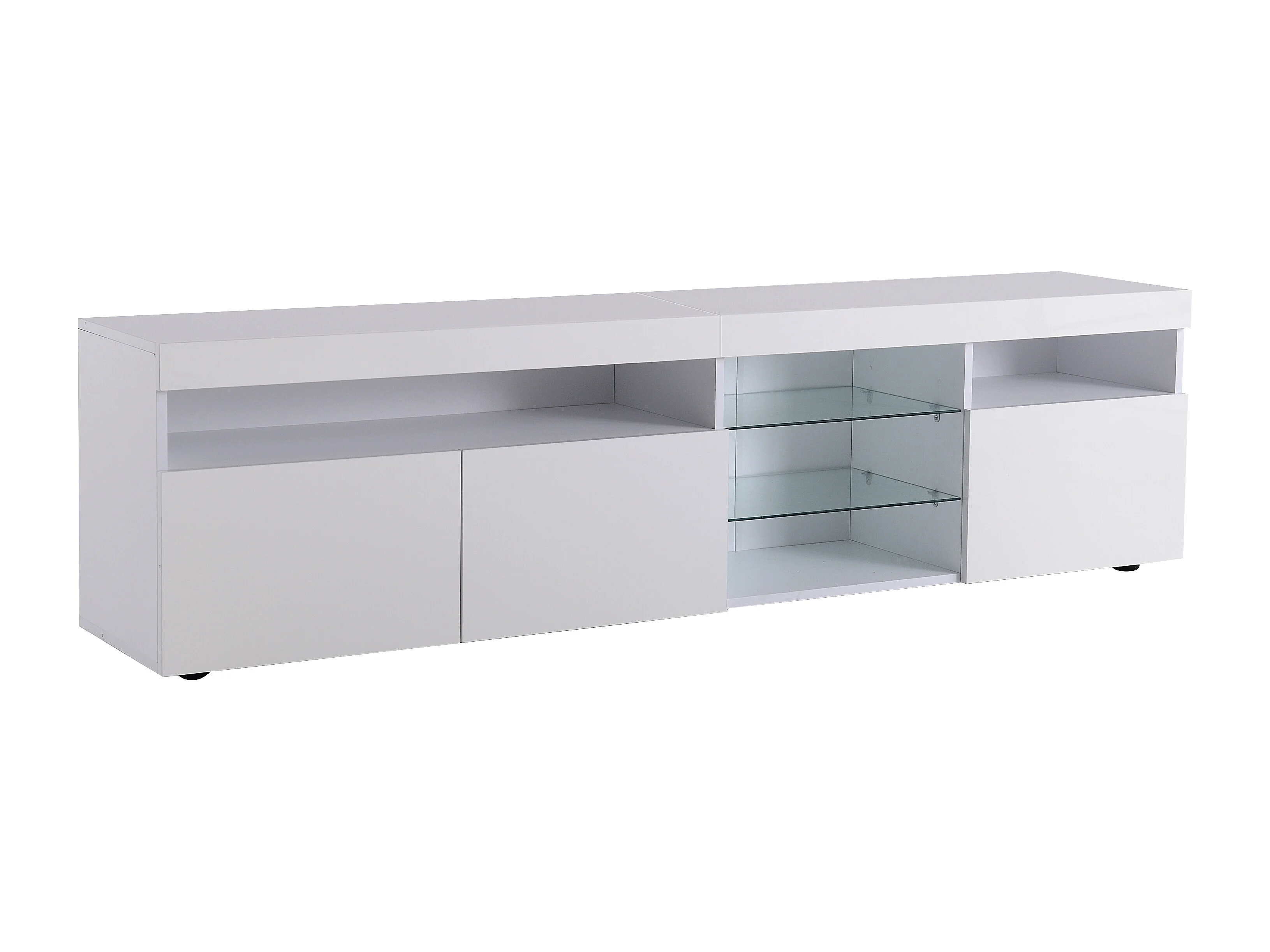 Meuble TV 180x48x35 cm, éclairage LED variable, 3 portes de rangement, MDF blanc
