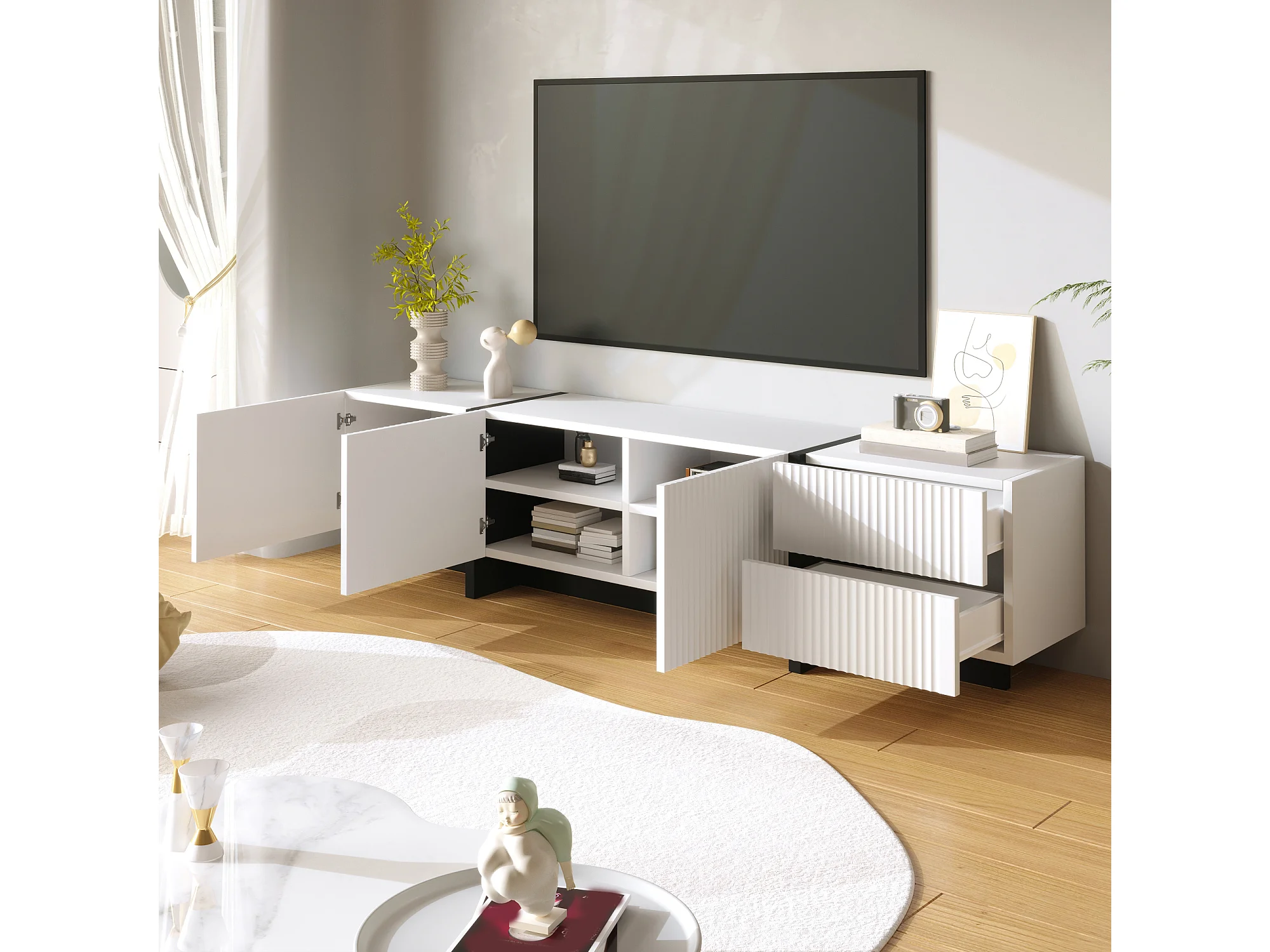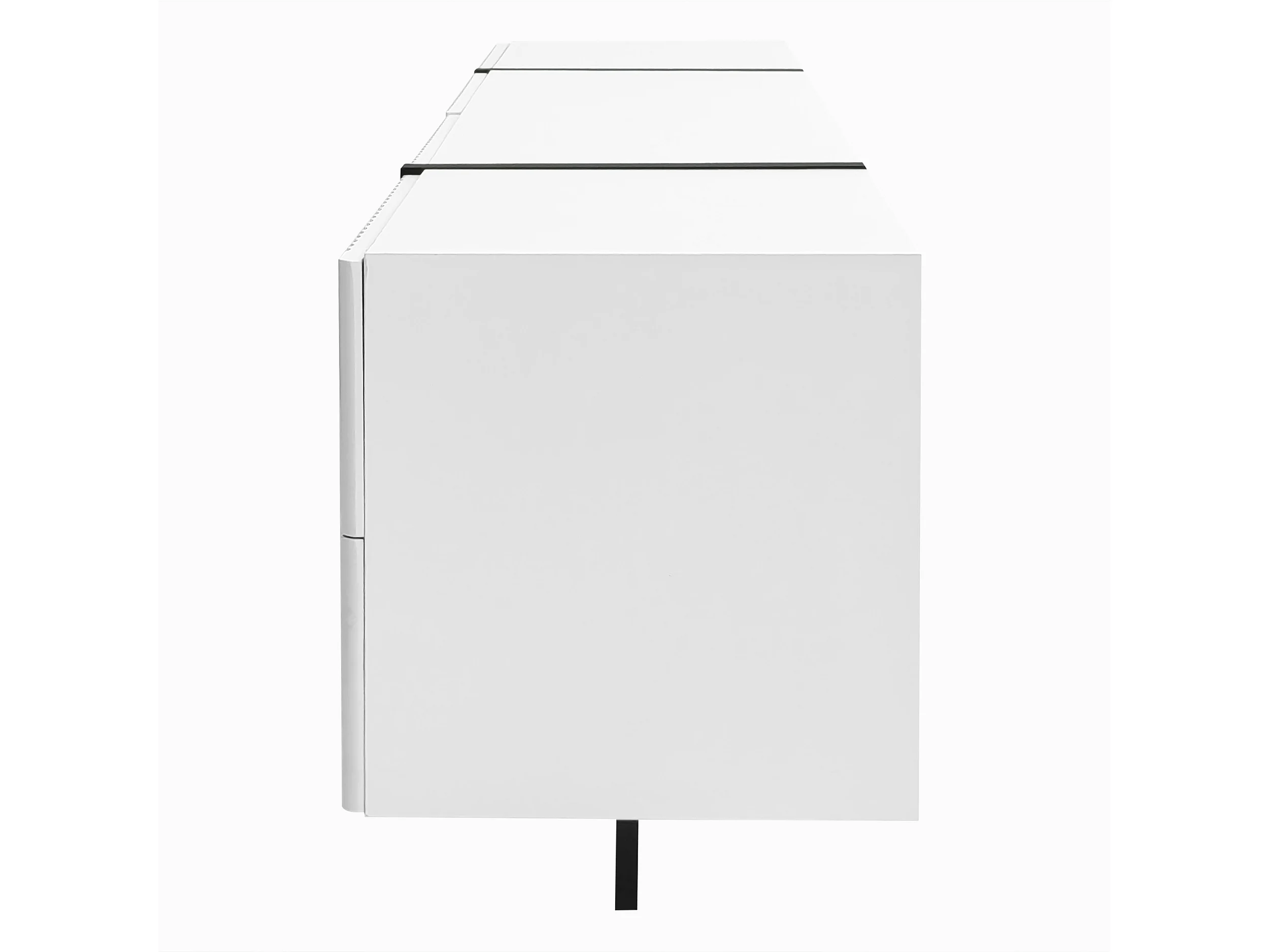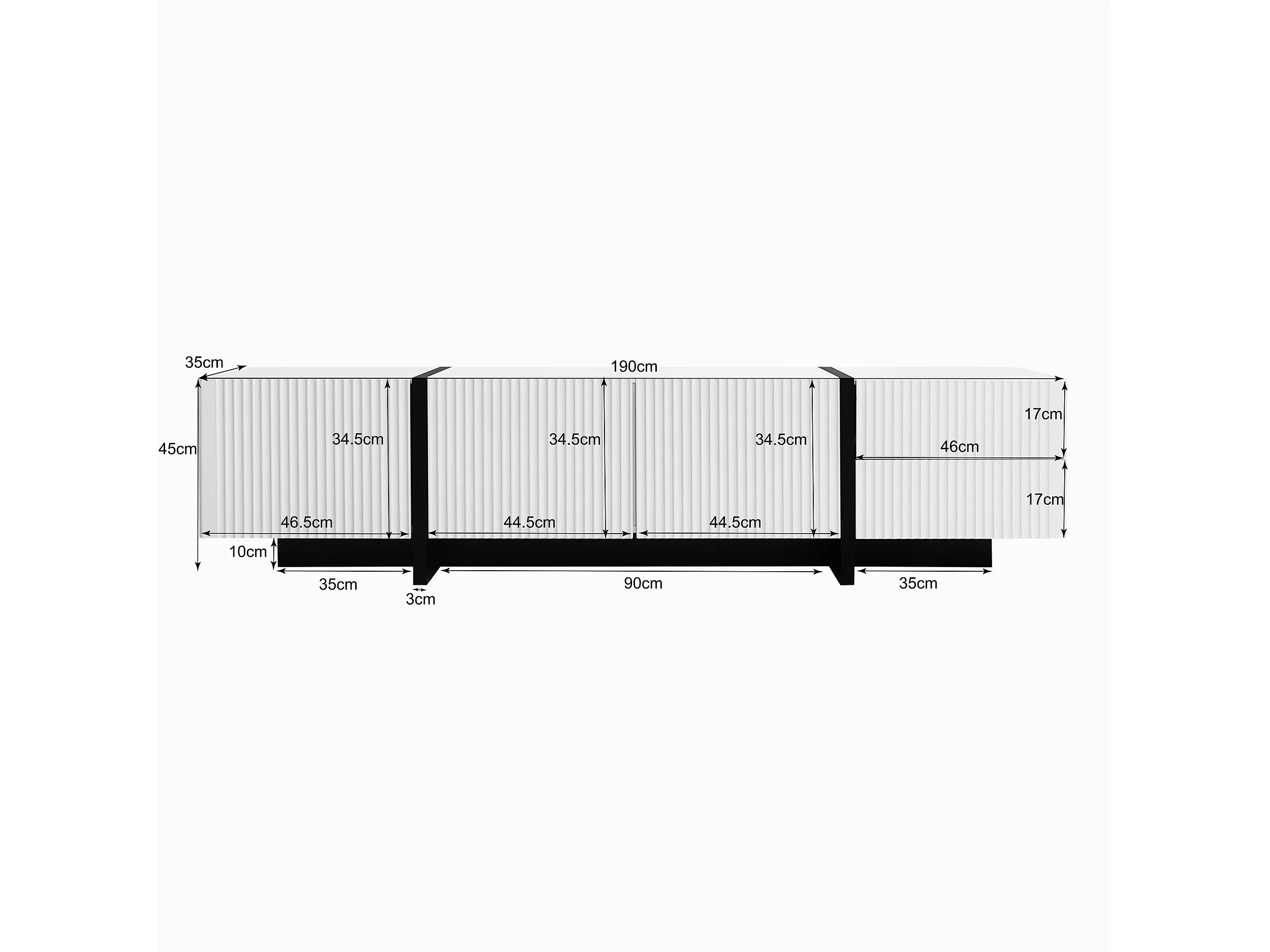 Meuble TV 190x35x45 cm, 3 portes et 2 tiroirs, charnières amorties, MDF et panneaux de particules, noir et blanc