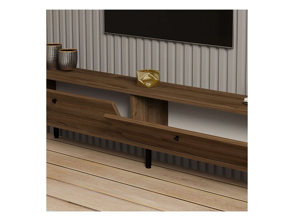 Meuble TV 2 abattants décor noyer et pieds en métal noir - DINARD