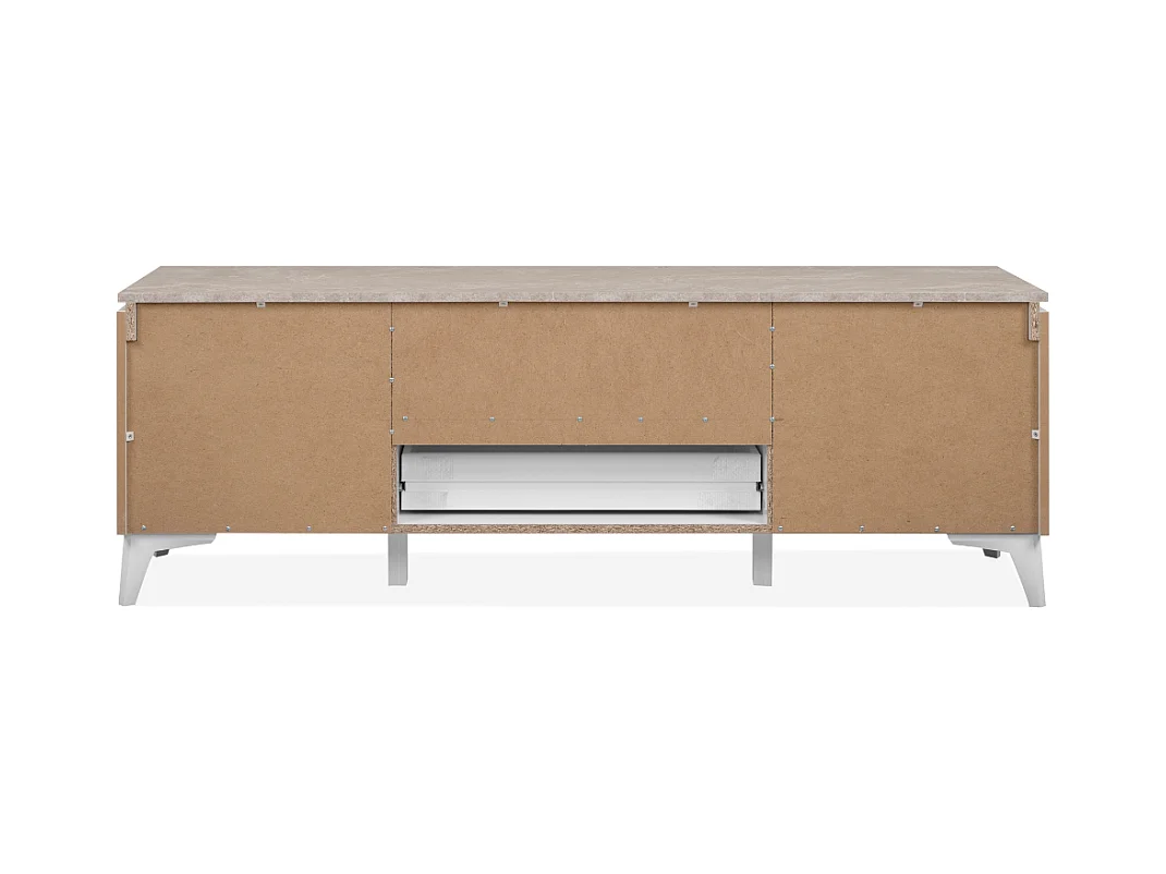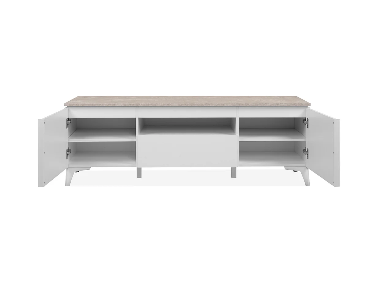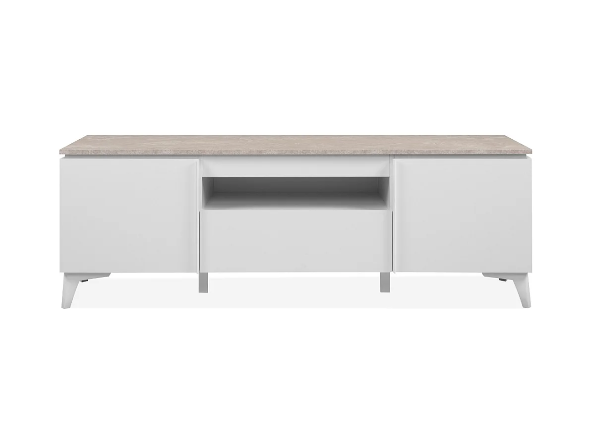 Meuble TV 2 portes, 1 tiroir et 1 niche décor travertin et blanc L150cm - BERTRIX