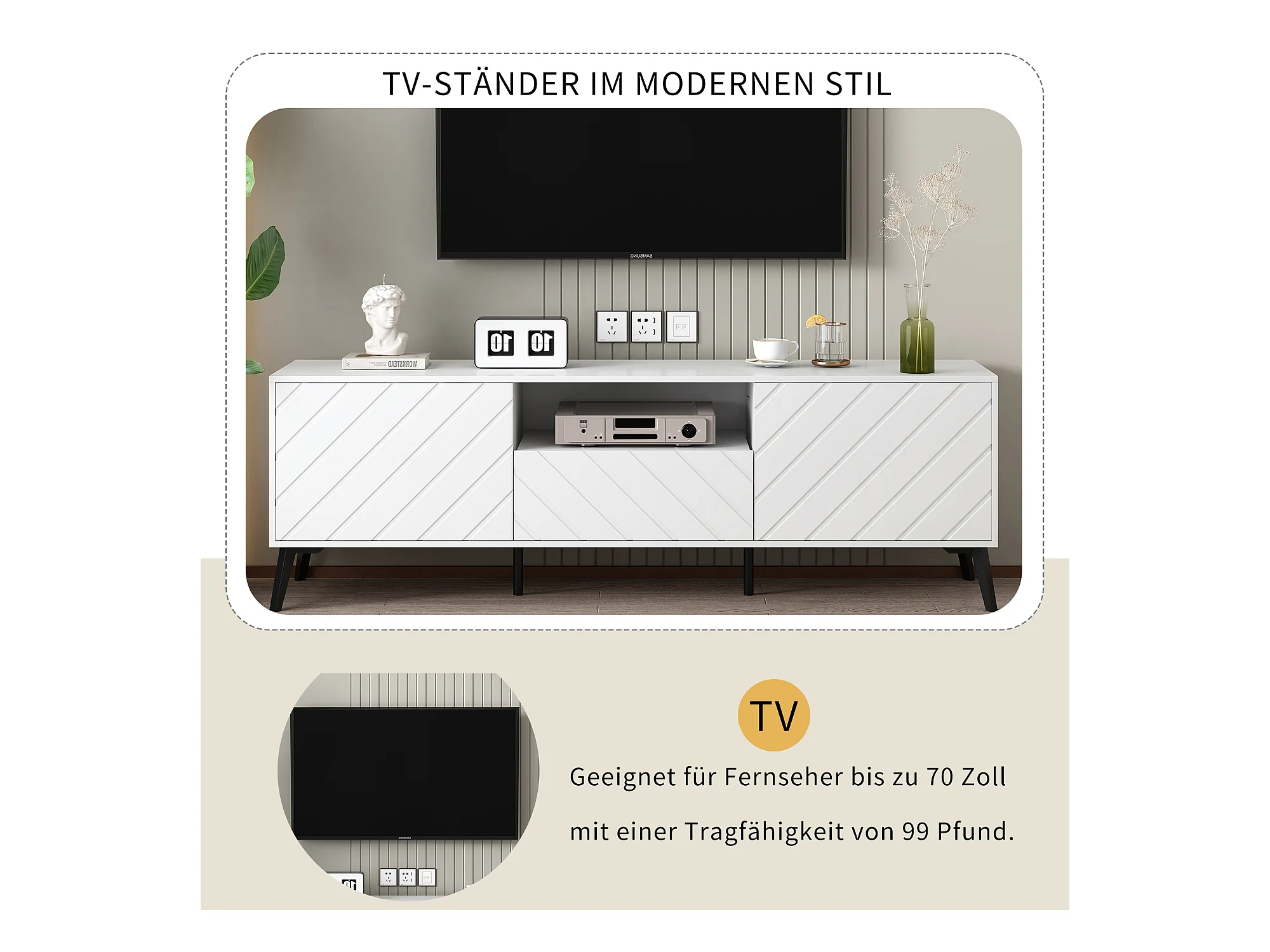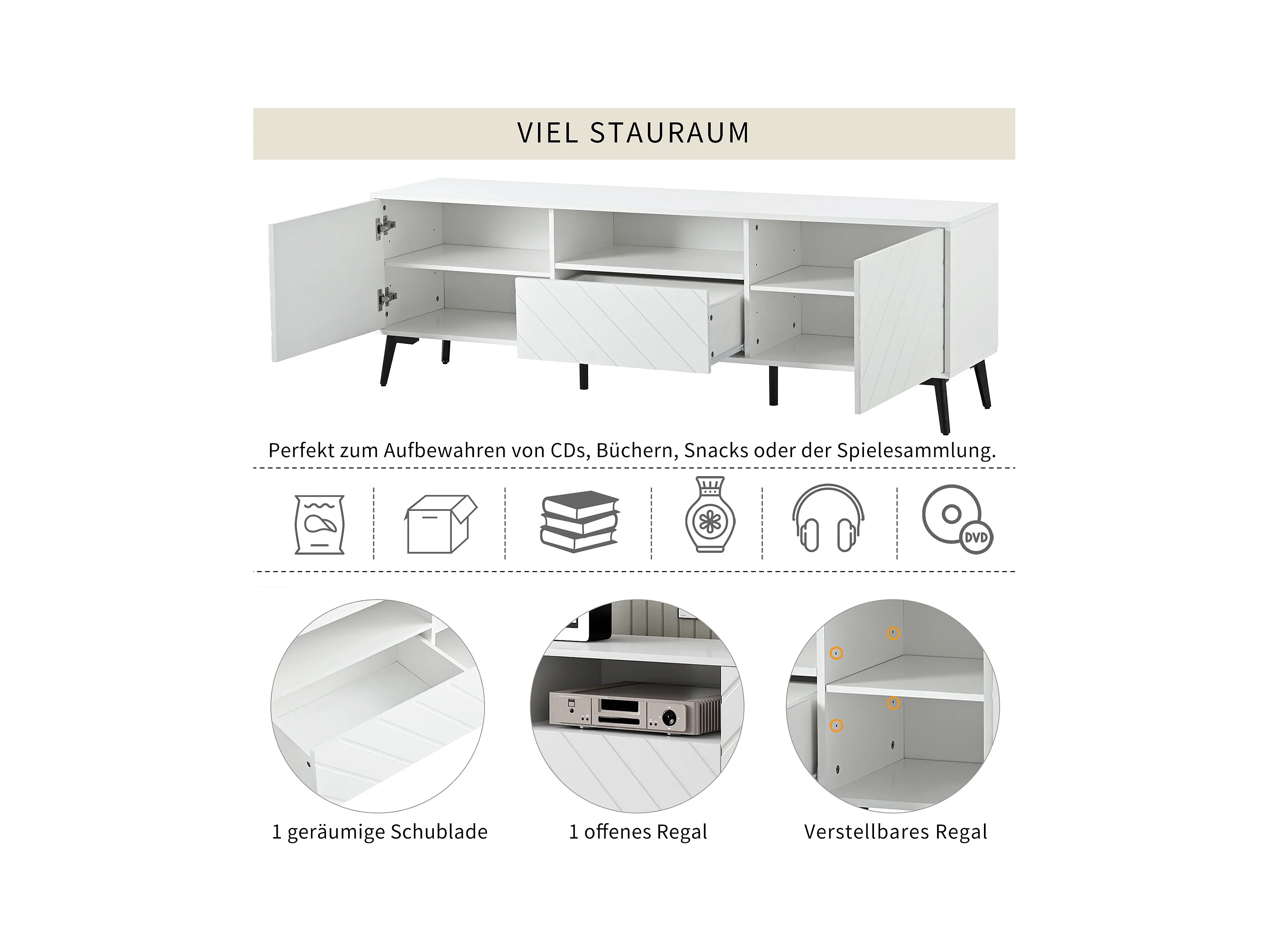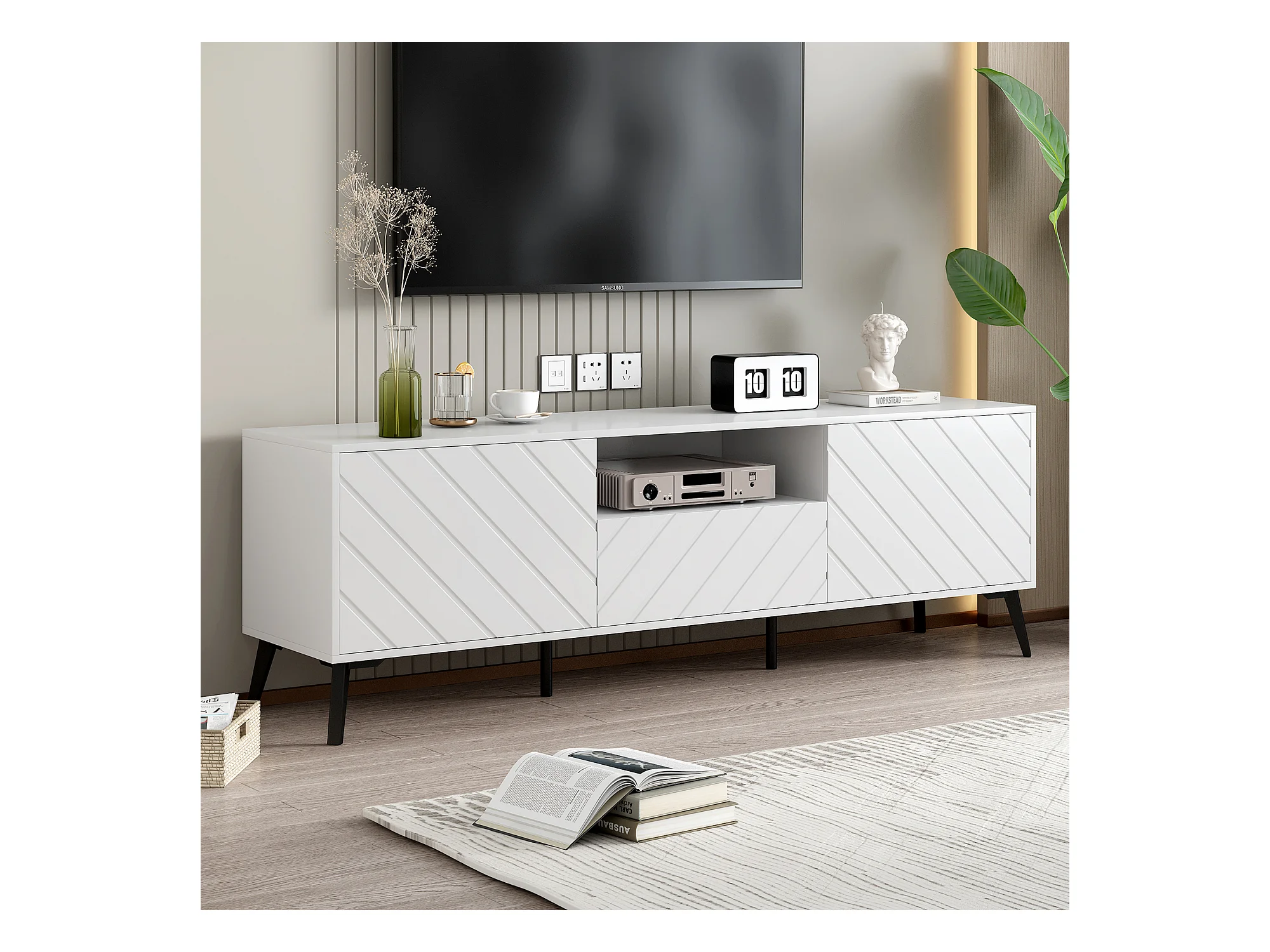 Meuble TV avec 2 portes 1 tiroir - 170 x 39.5 x 55 cm - bois MDF et pieds en métal - blanc