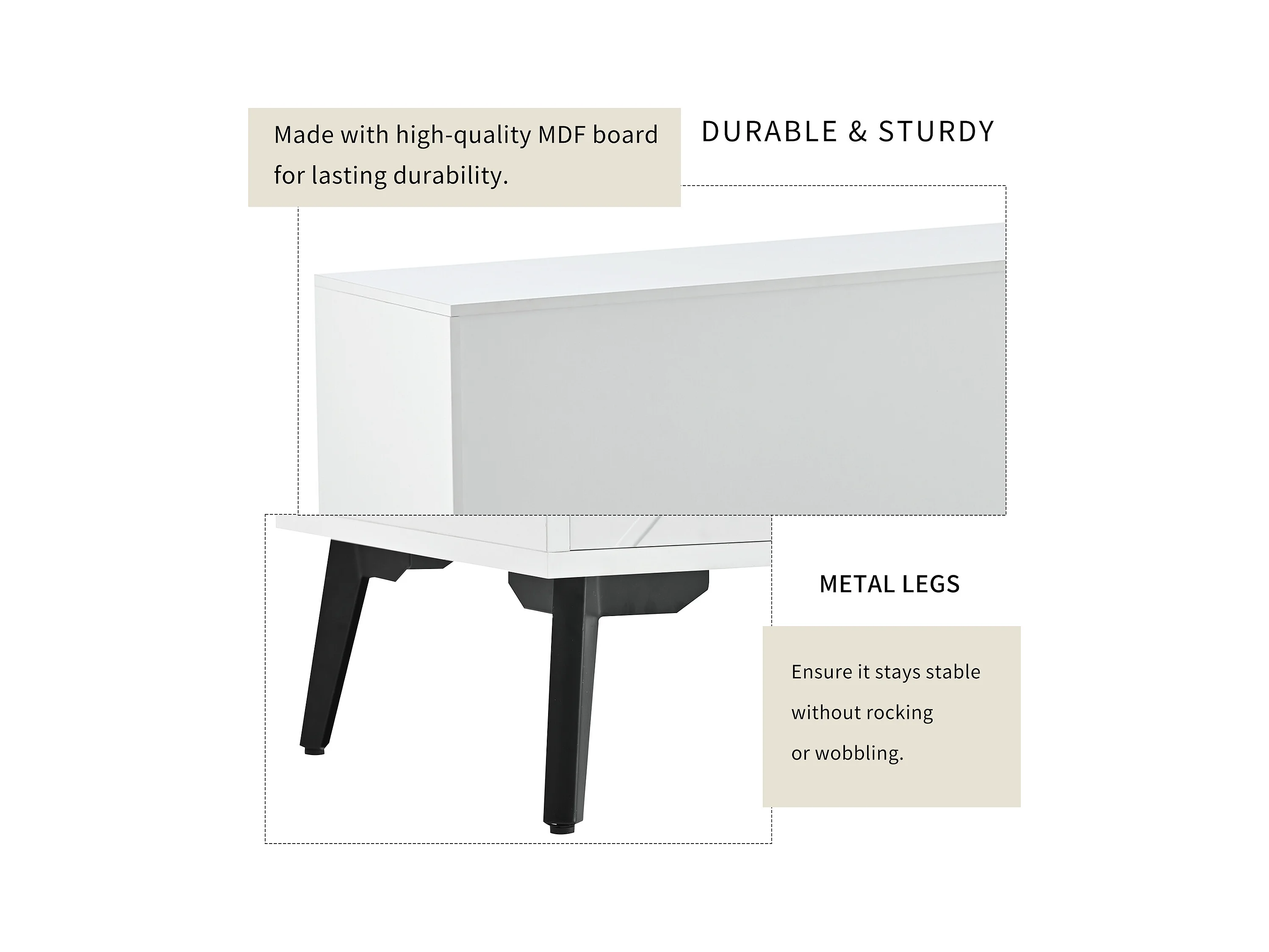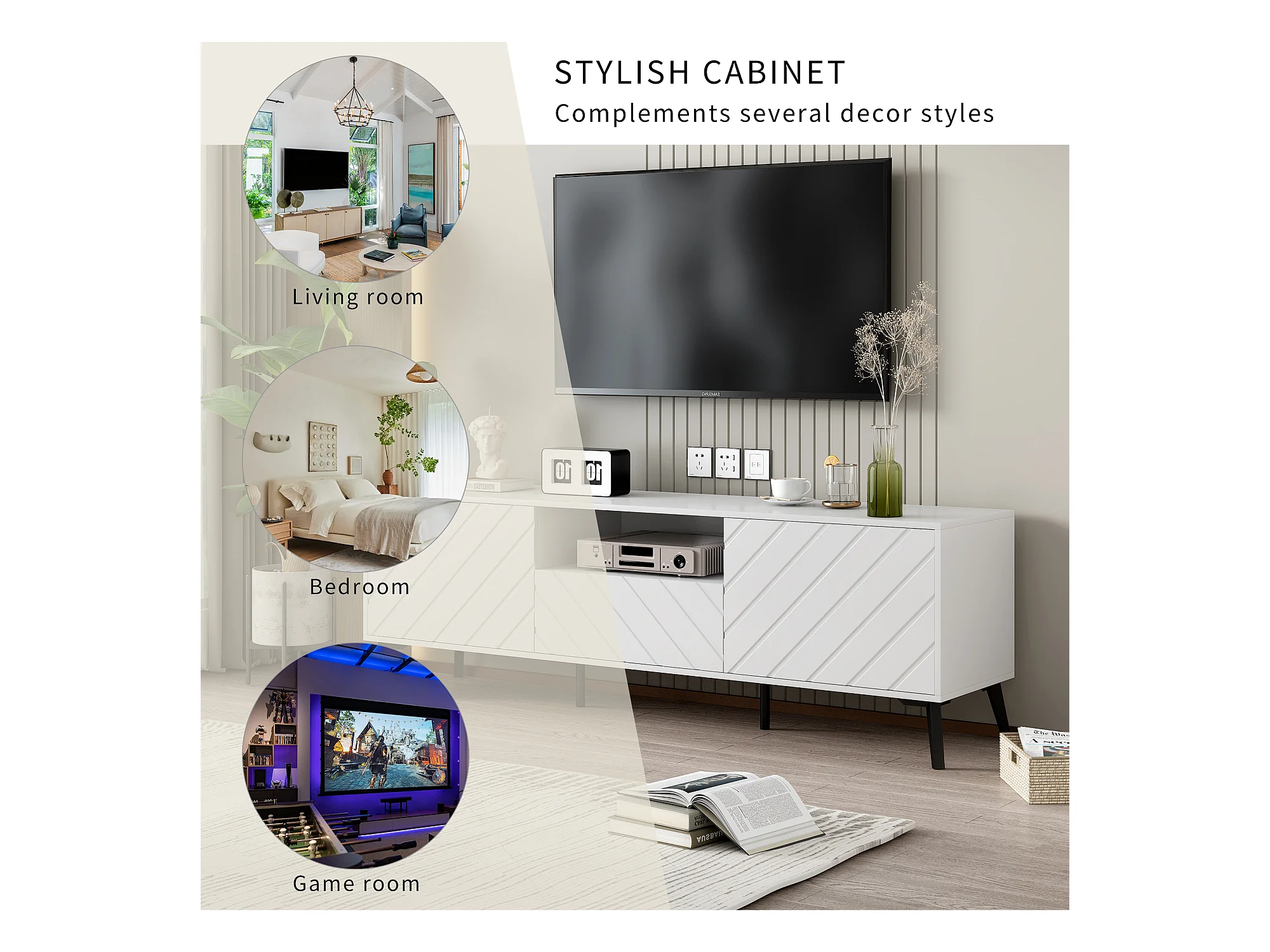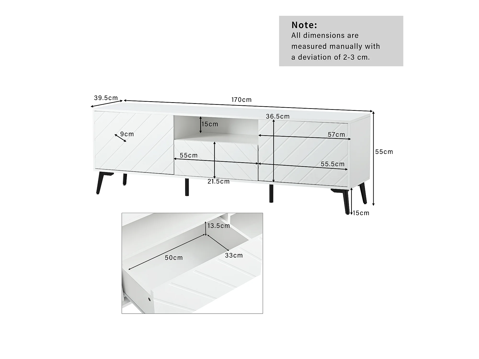 Meuble TV avec 2 portes 1 tiroir - 170 x 39.5 x 55 cm - bois MDF et pieds en métal - blanc