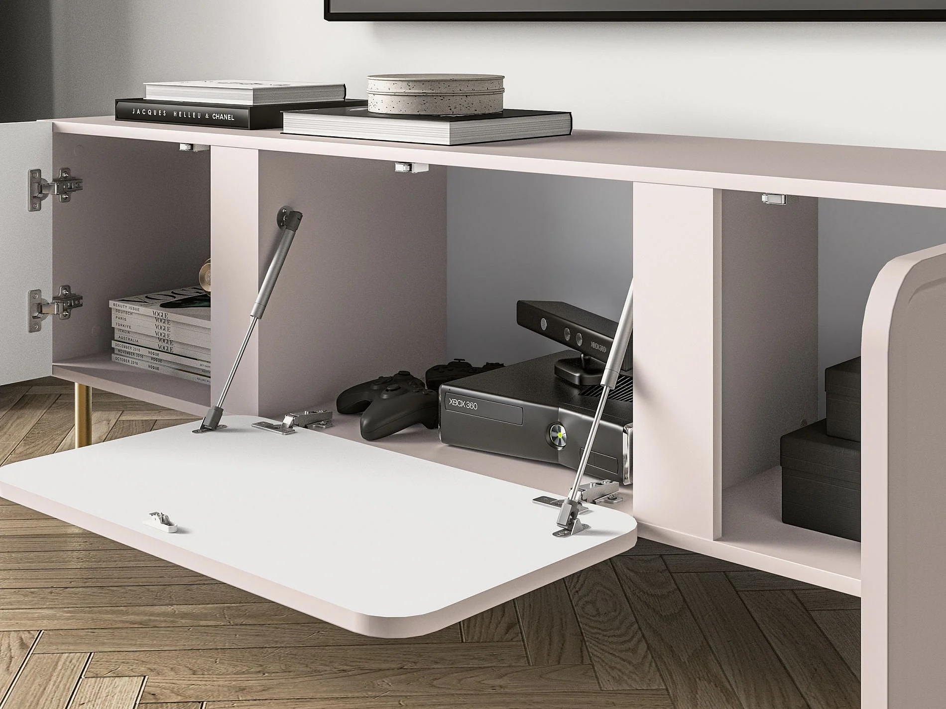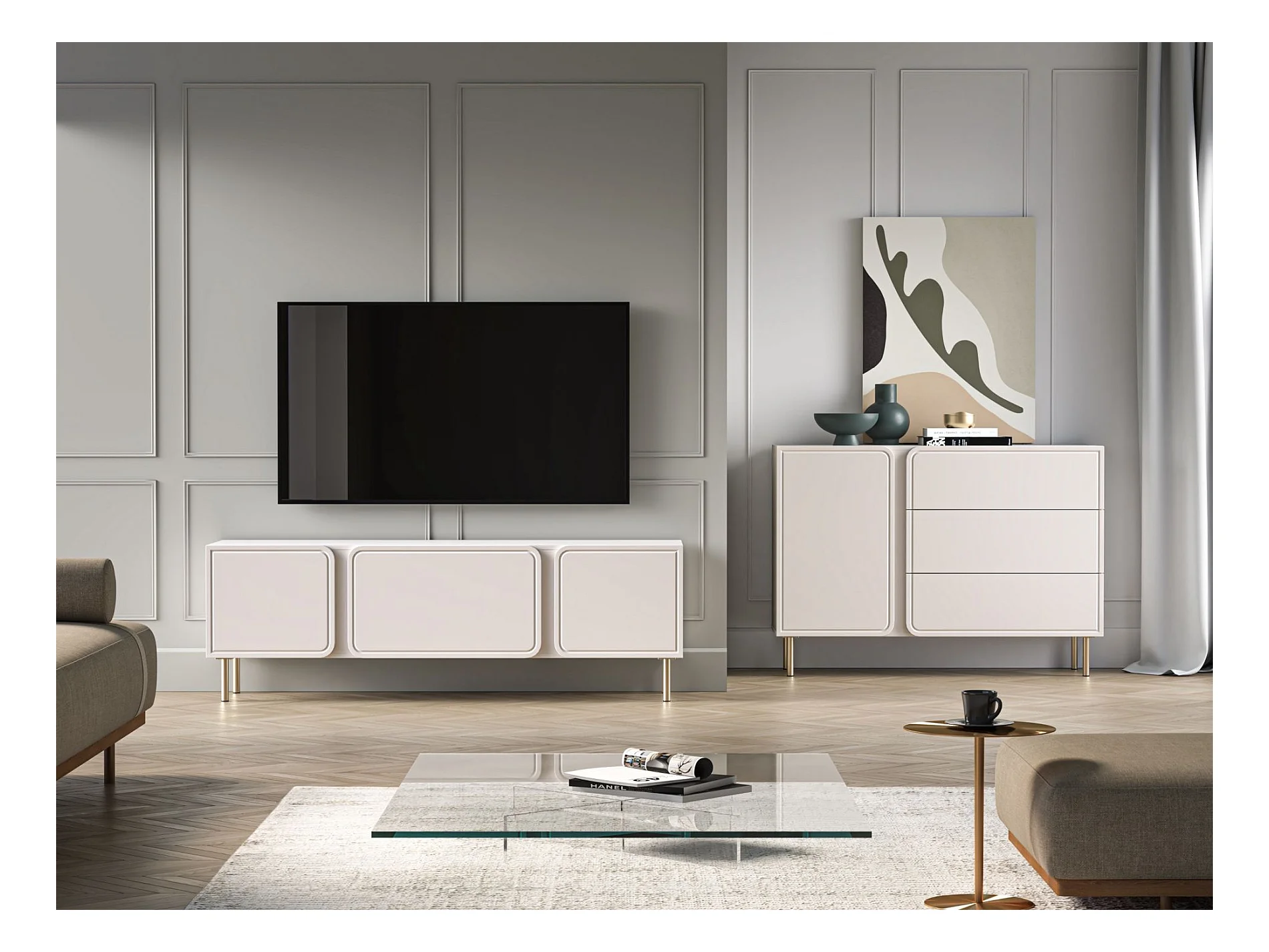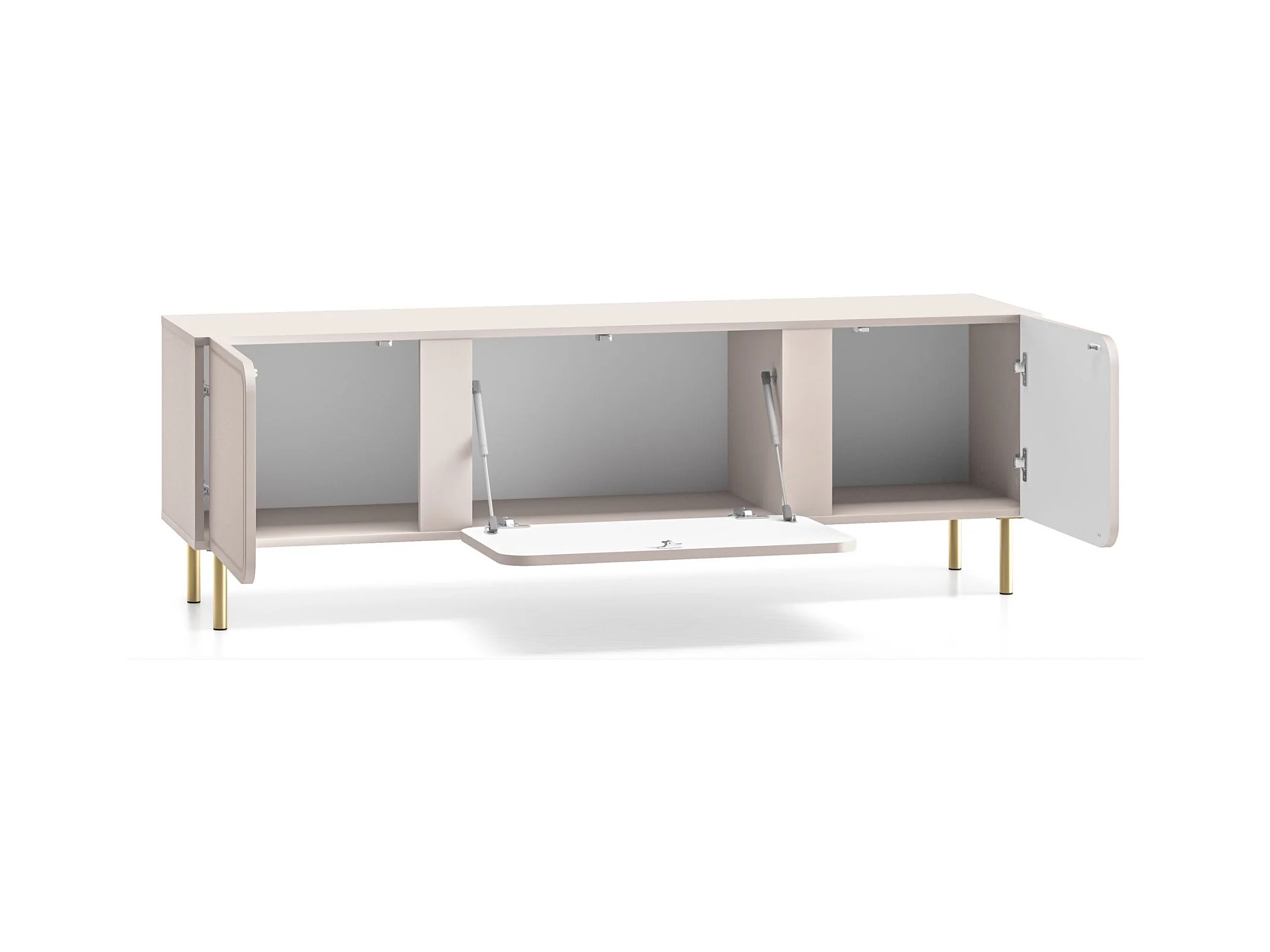 Meuble TV à deux portes - 160 cm - avec pieds dorés - grège - SELGIN