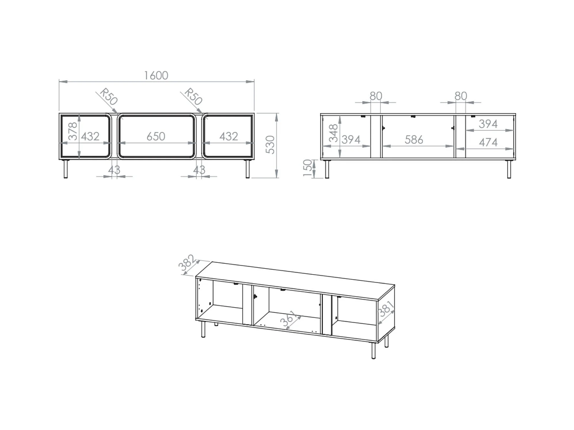 Meuble TV 3 portes - 150 cm - Grège - WUWU