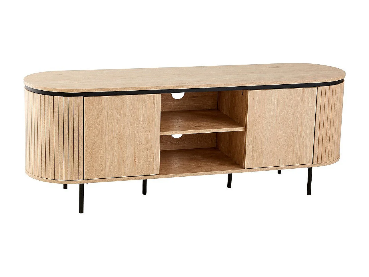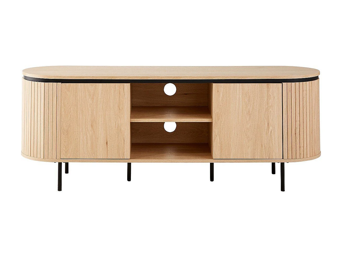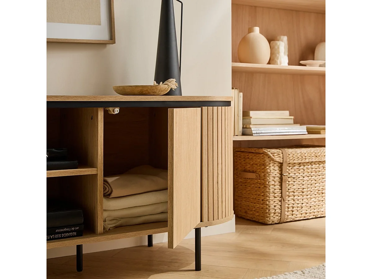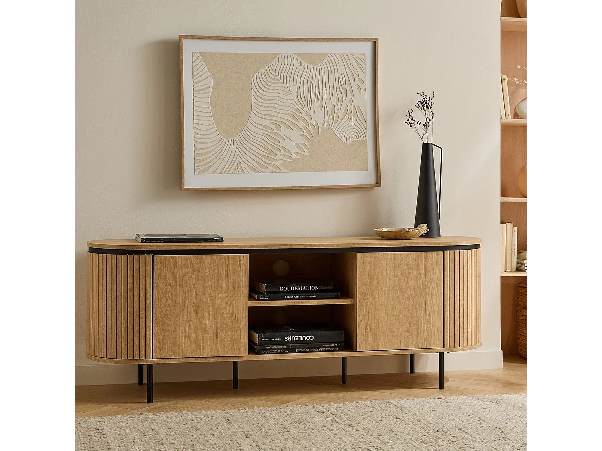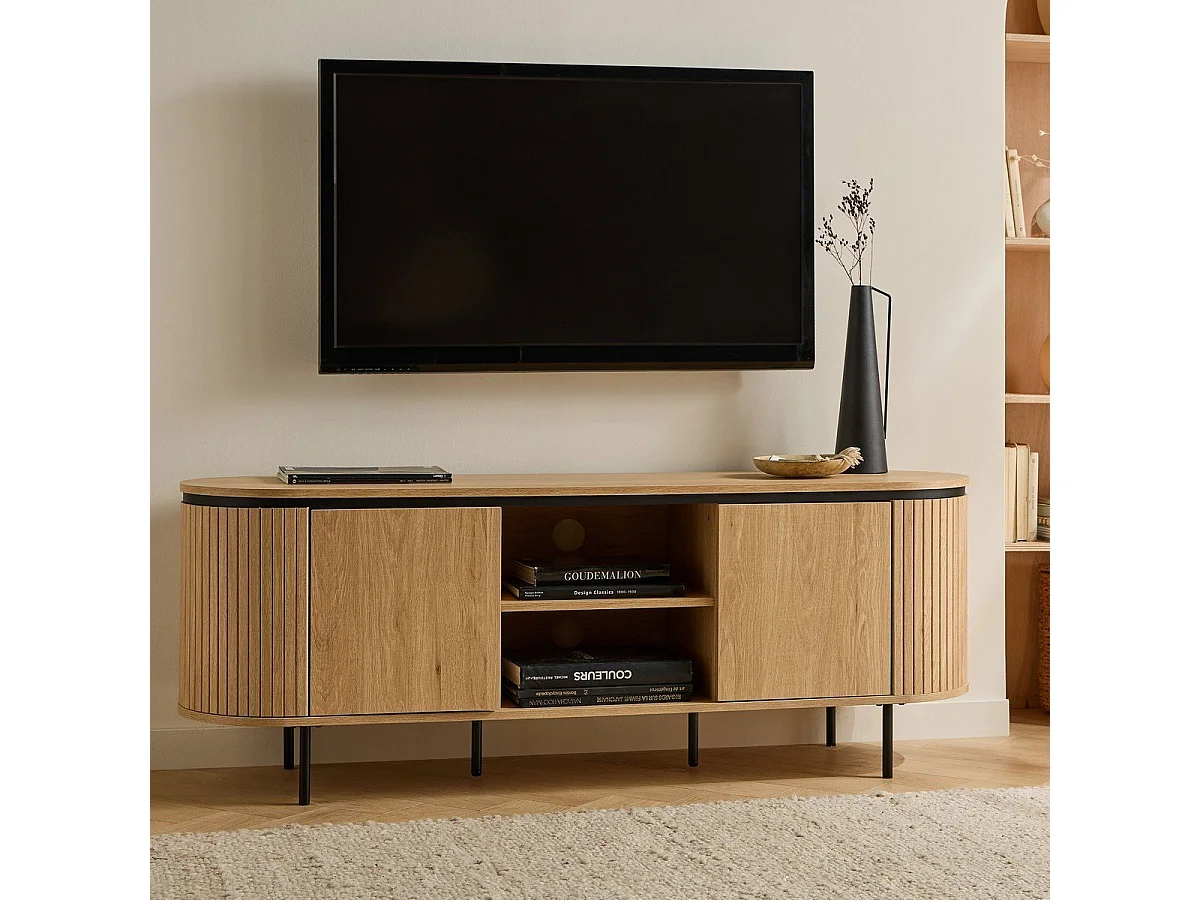 Meuble TV 2 portes avec côtés effet rainuré L150 cm - MALAGA