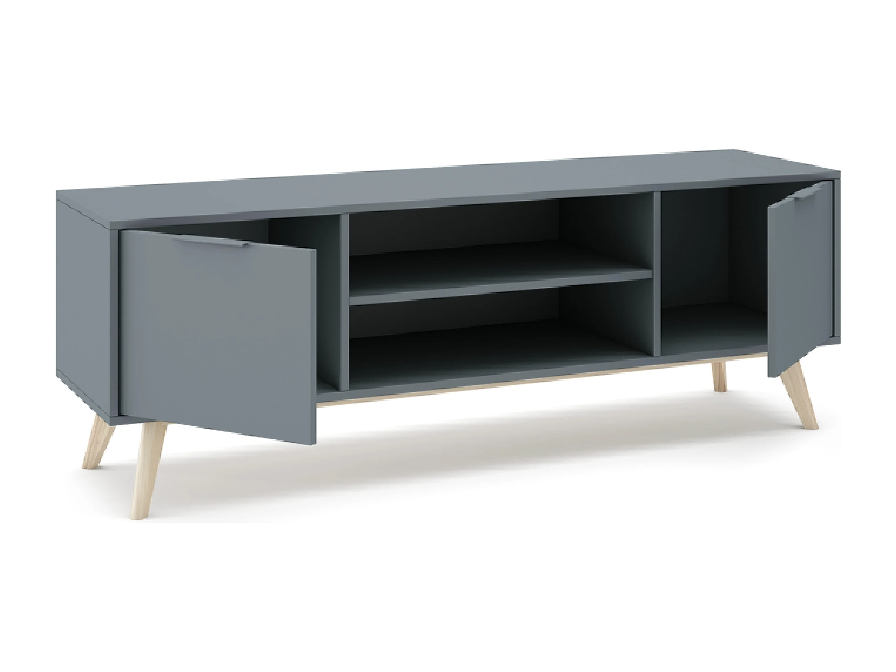 Meuble TV 2 portes avec étagères ouvertes 140x53 cm