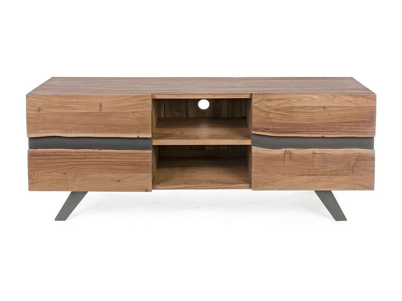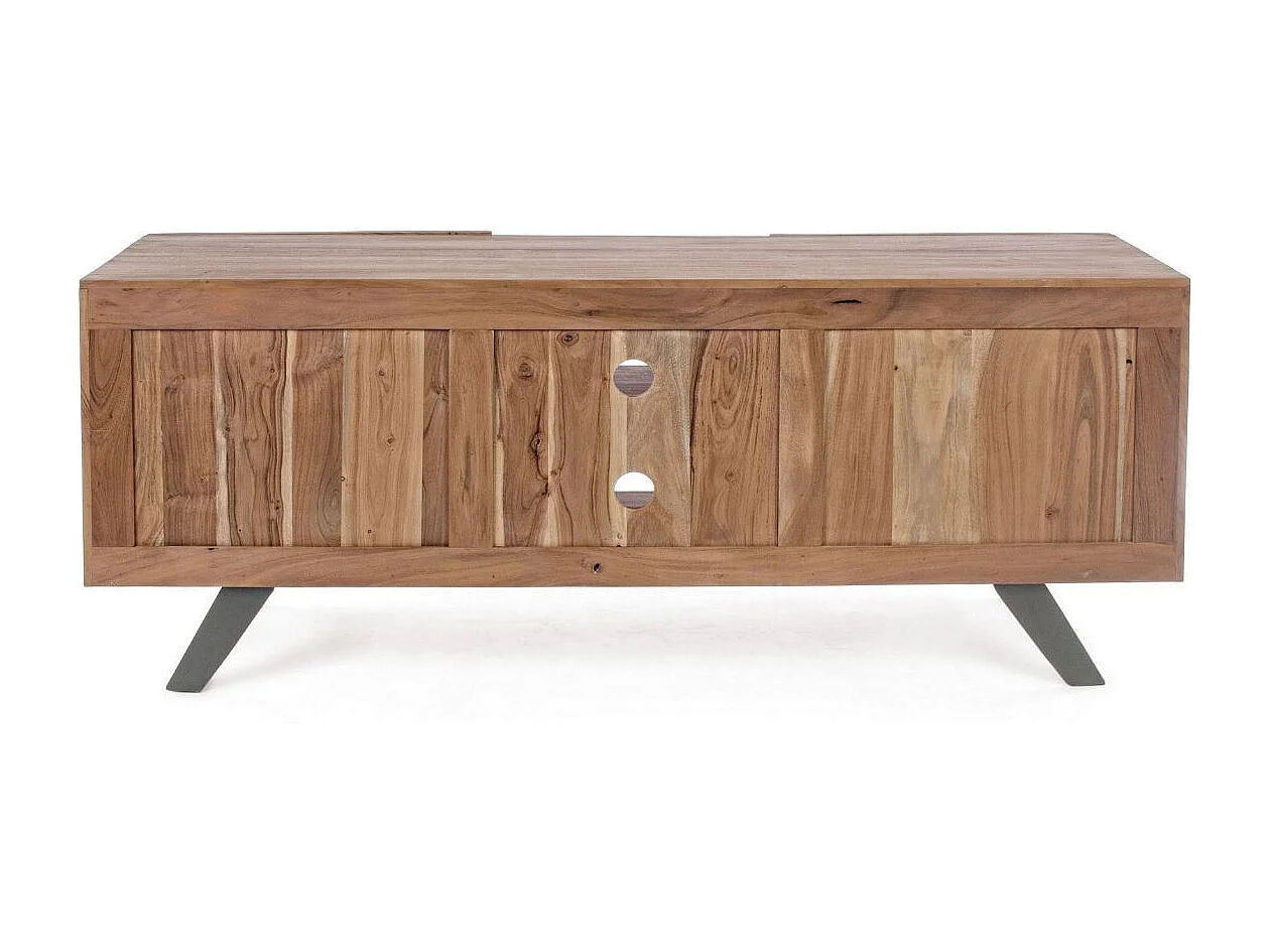 Meuble TV 2 portes bois d'acacia et pieds acier gris Denia 160cm