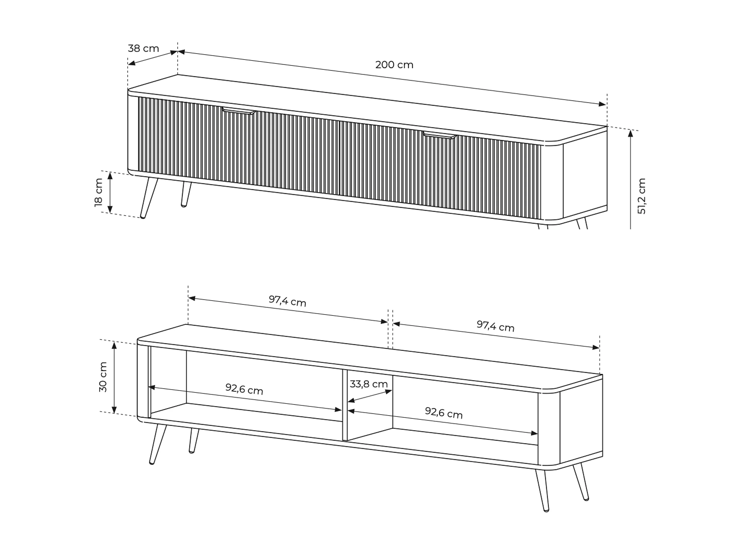 Meuble TV : Beige, 200 x 38 x 51,2 cm