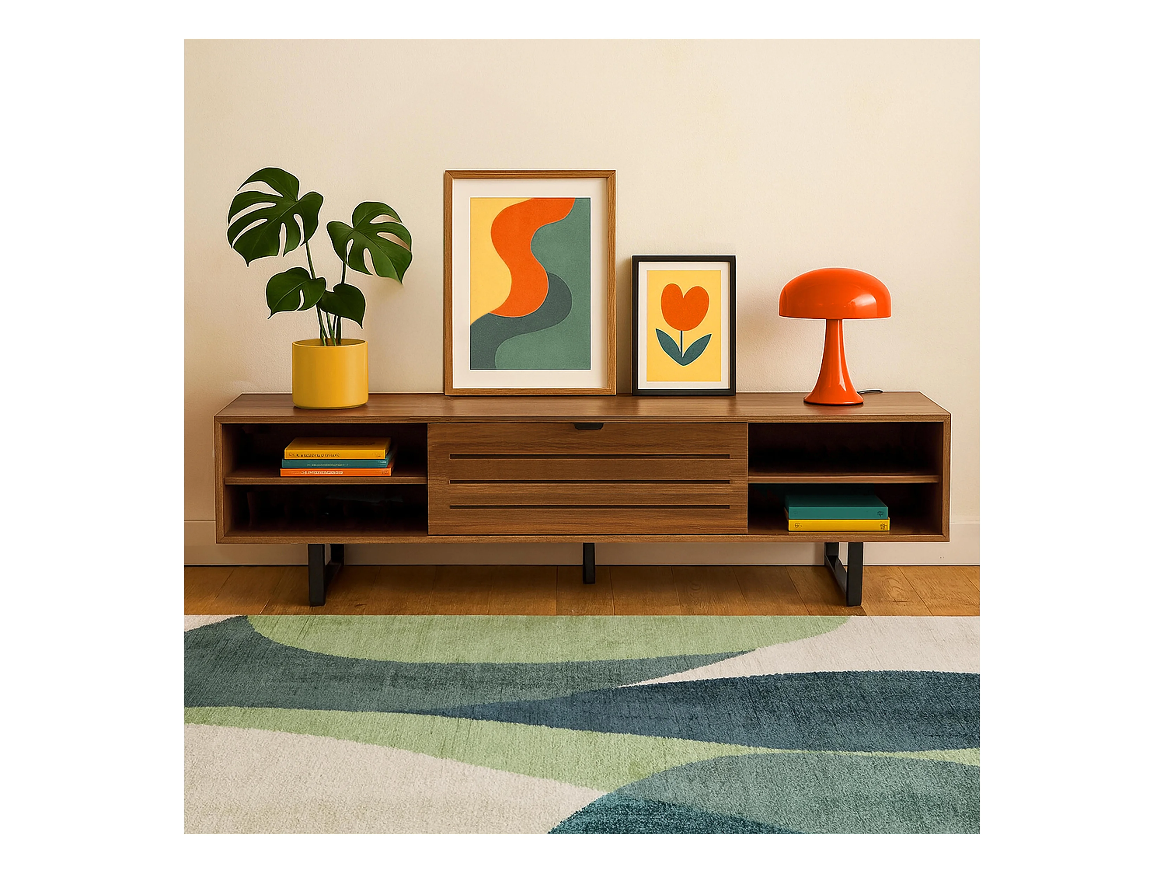 Meuble TV rectangulaire 2 portes L200 cm bois foncé