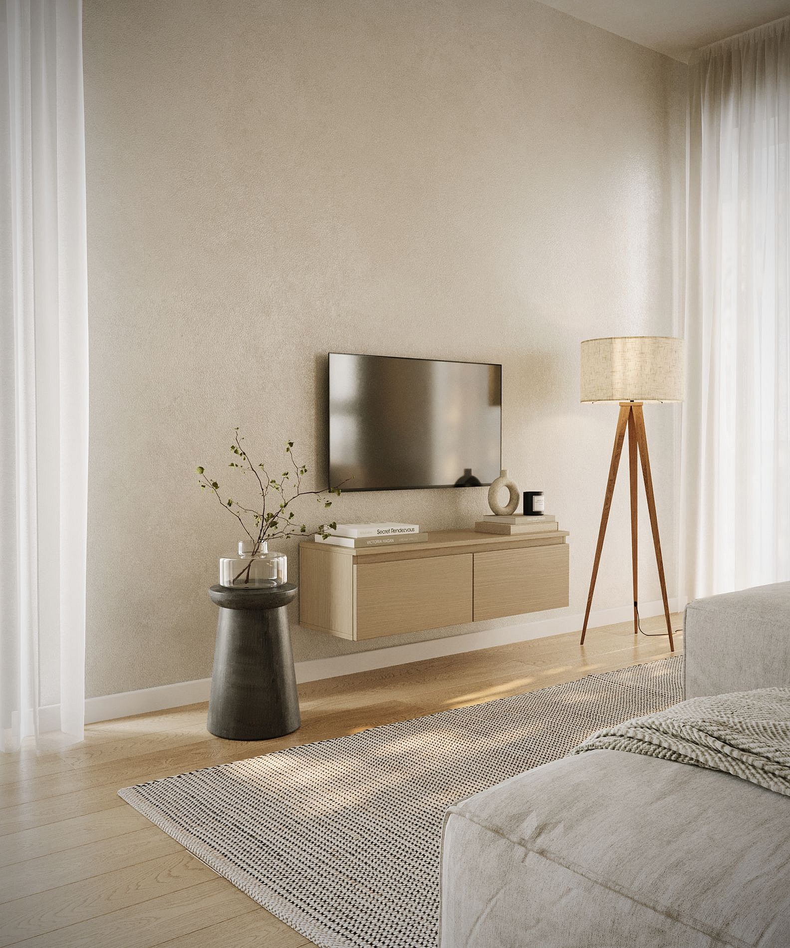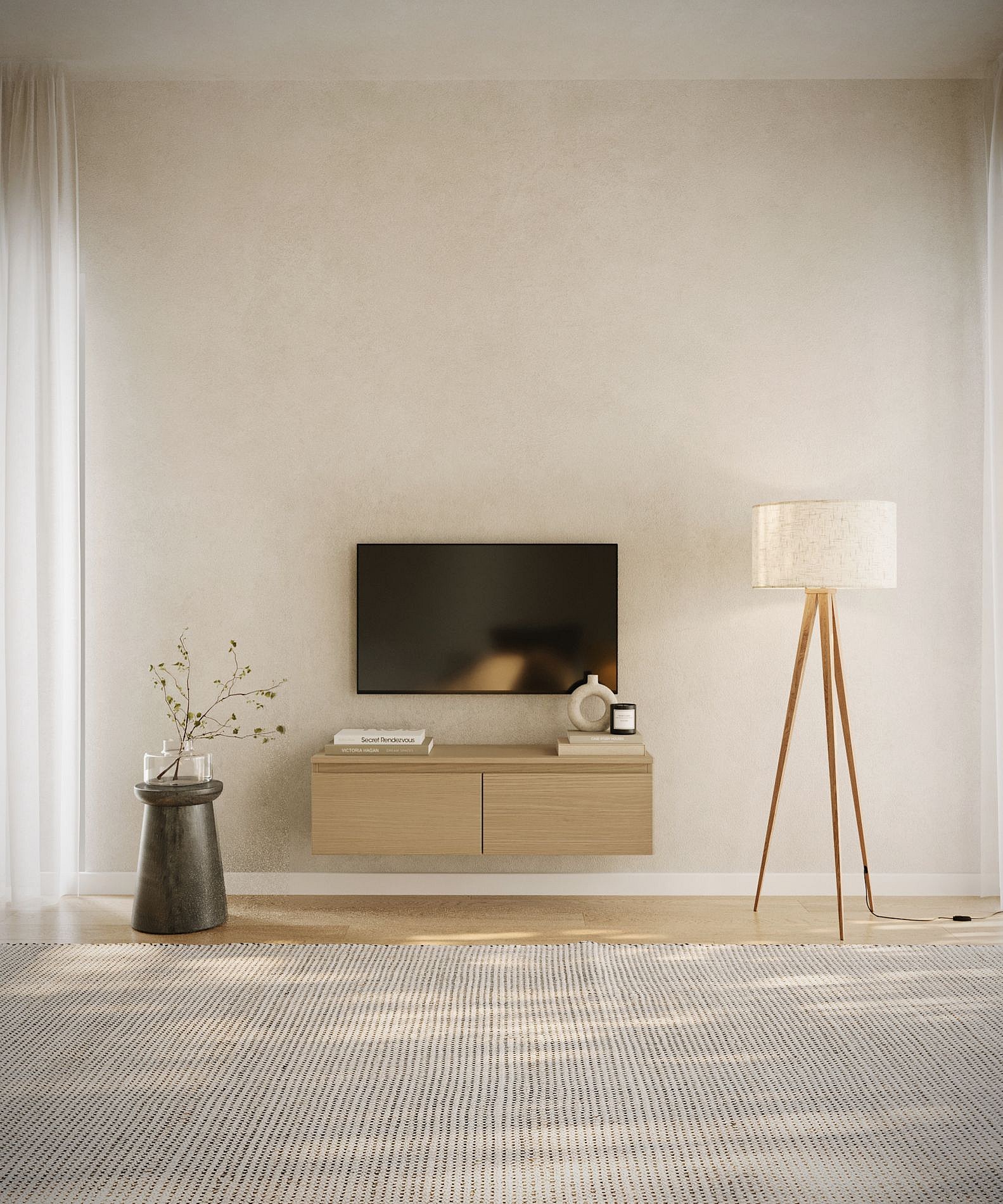 Meuble TV 2 portes -suspendu - 100 cm - chêne de Lindberg - BEMMI