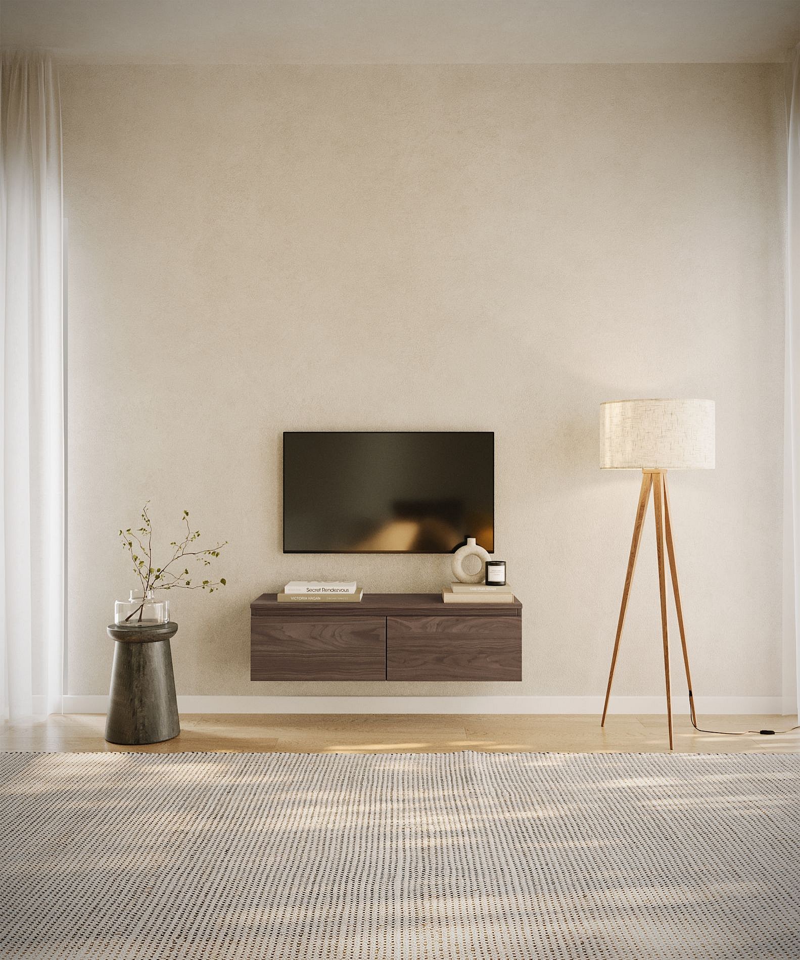 Meuble TV 2 portes -suspendu - 100 cm - noyer du Wisconsin - BEMMI