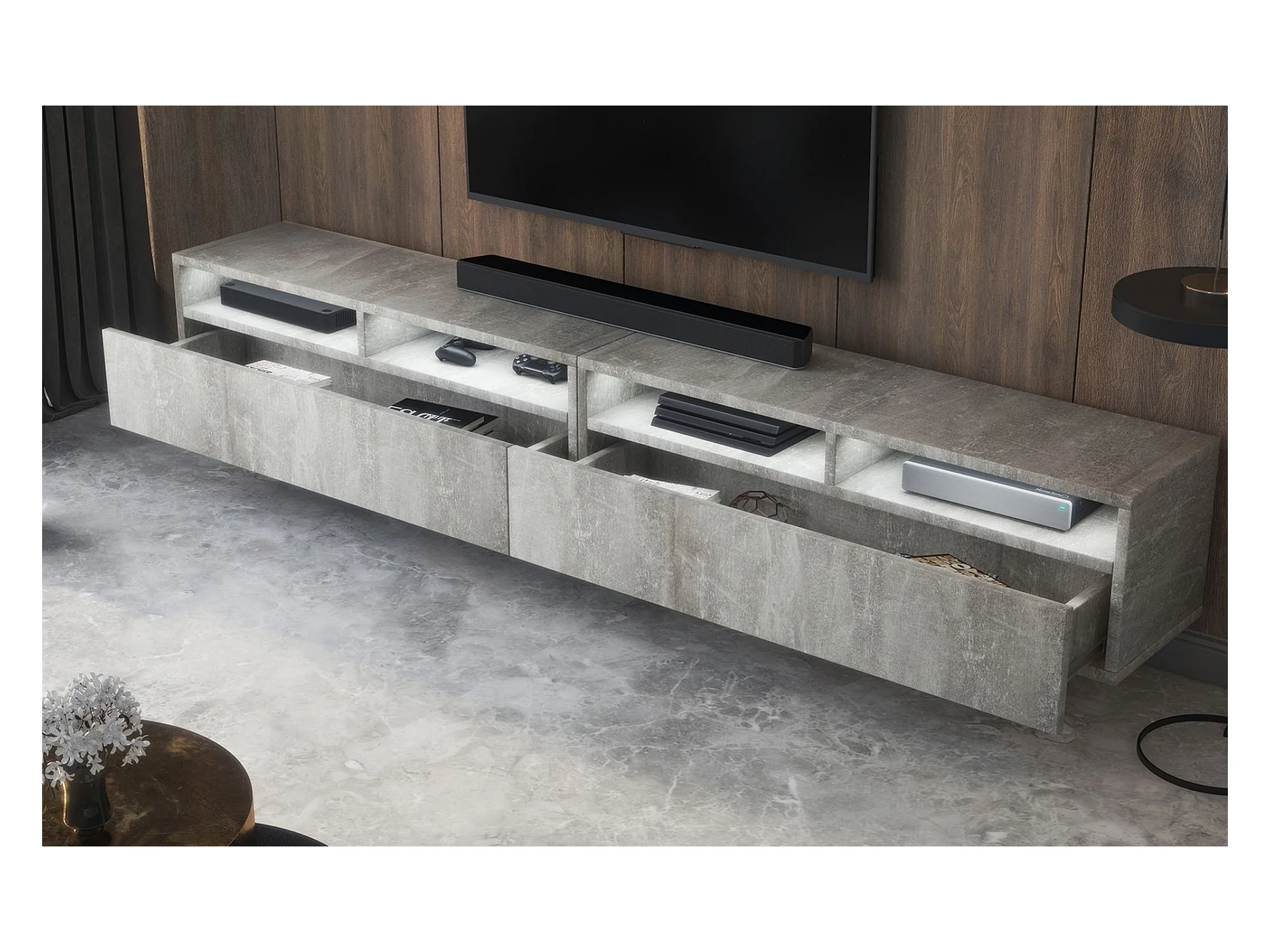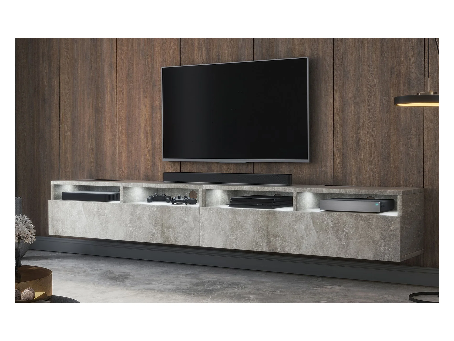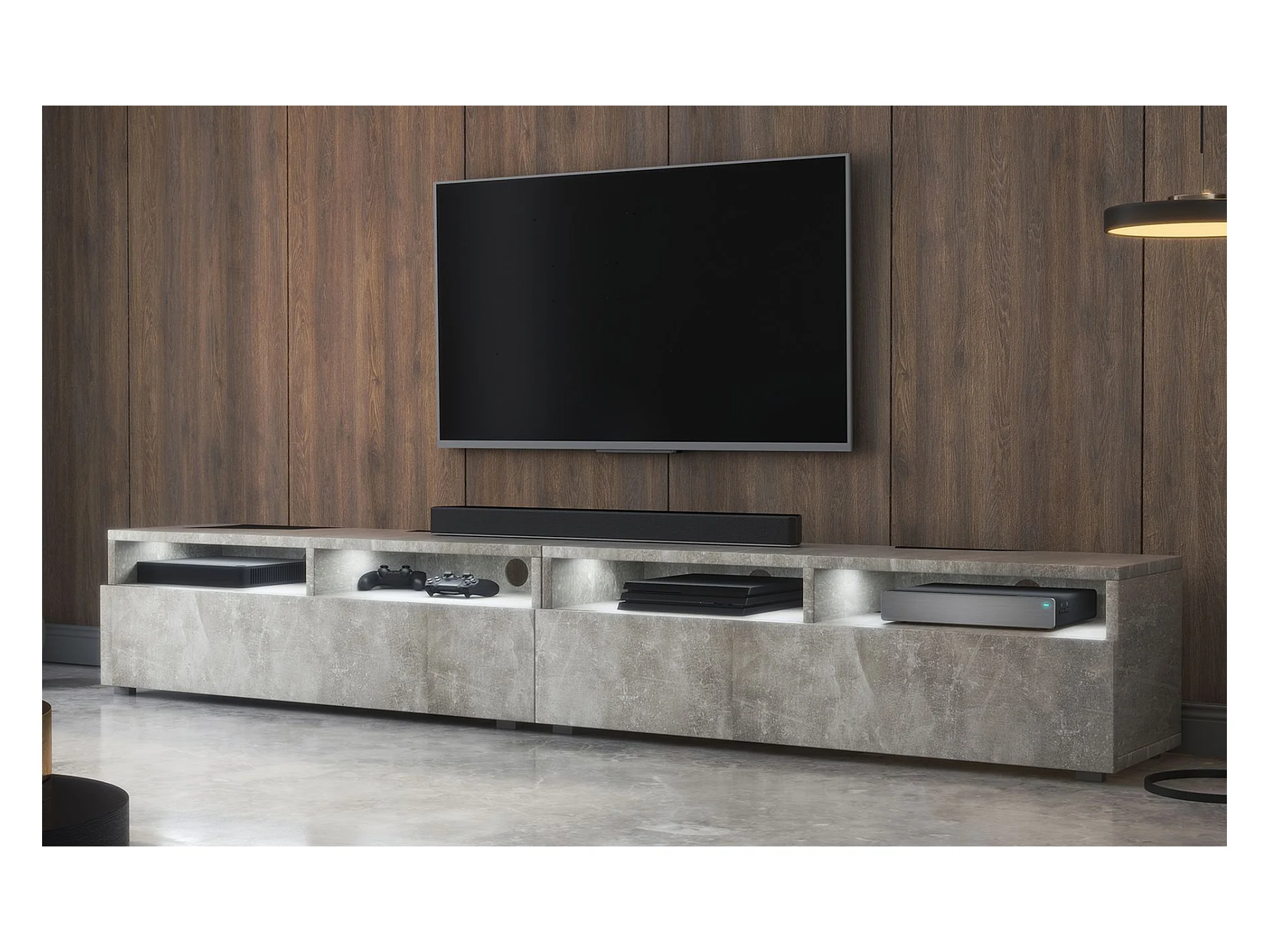 Meuble TV - 2 tiroirs - aspect béton LED - 200 cm - REDNAW