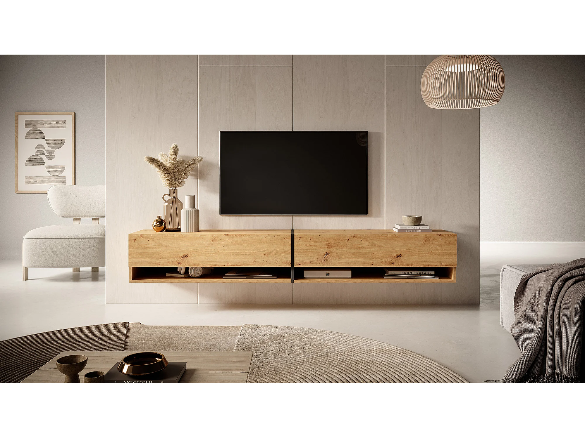 Meuble tv 200 cm -chêne artisan avec insert graphite - MIRRGO