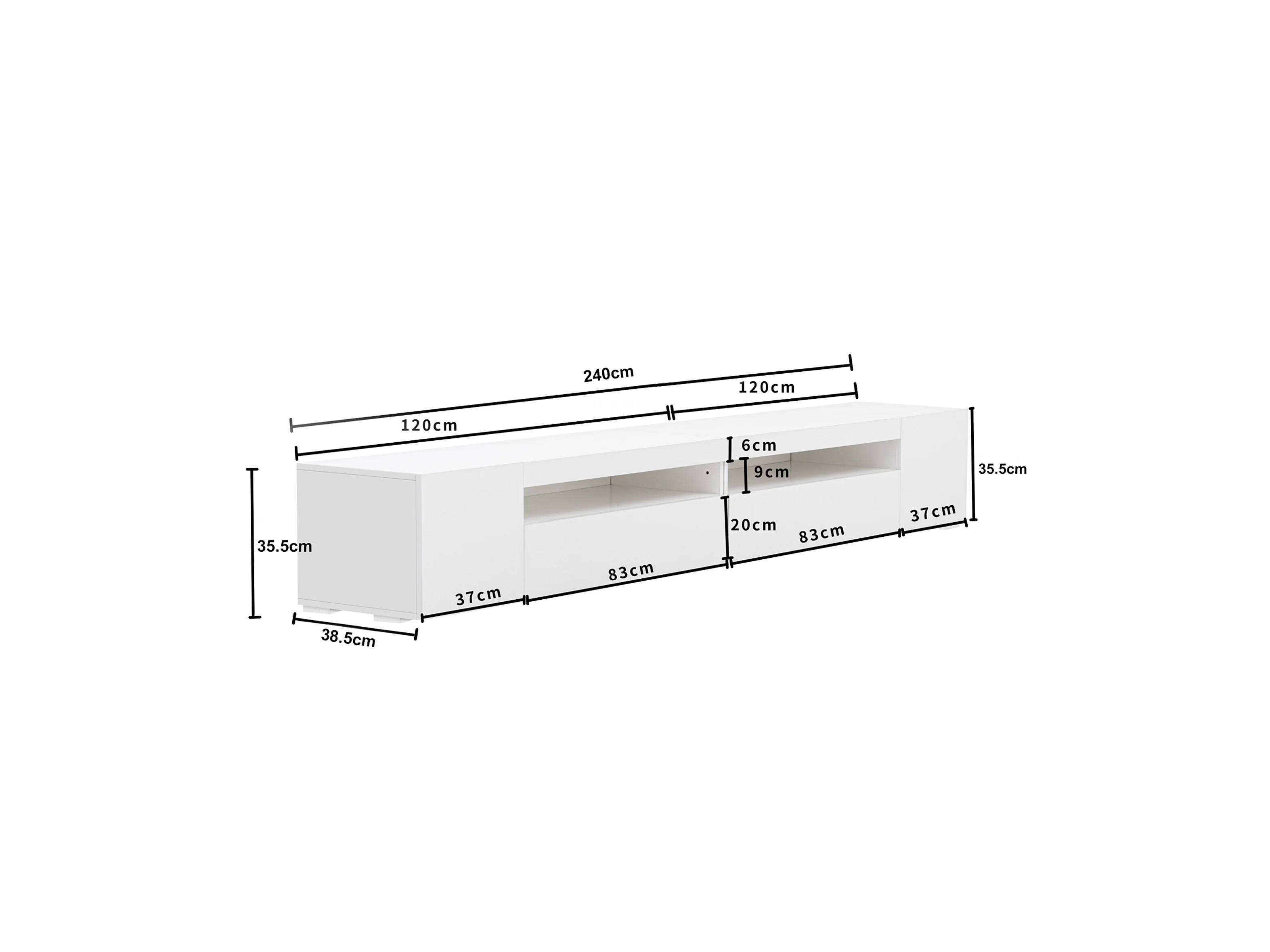 Meuble TV 240x38.5x35.5cm LED variable Design symétrique Fonction de rangement Matériel MDF Blanc