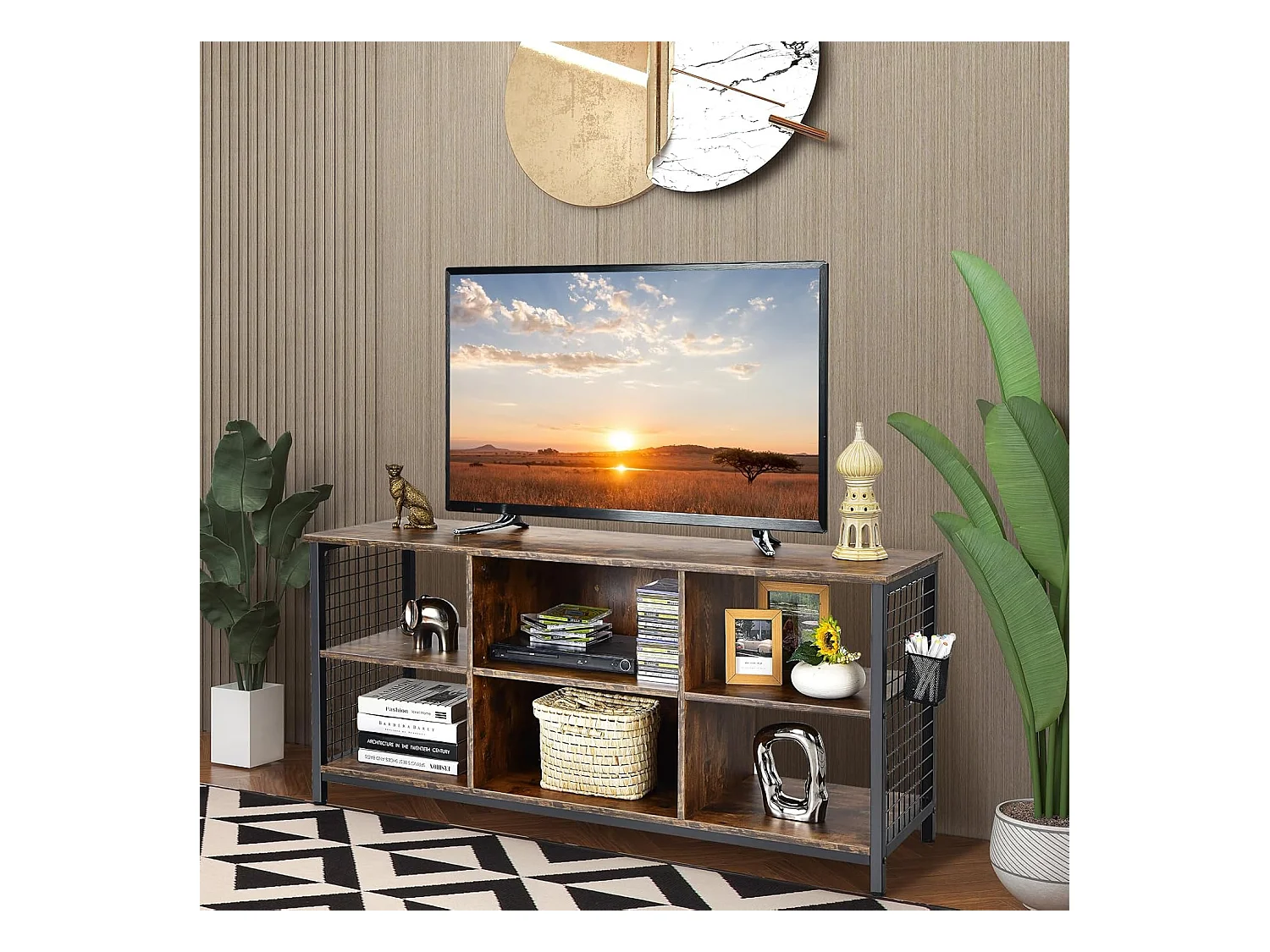 Meuble tv 3 étagères, 65" au max, 6 compartiments, 2 passe-câbles 140 x 40 x 62,5 cm