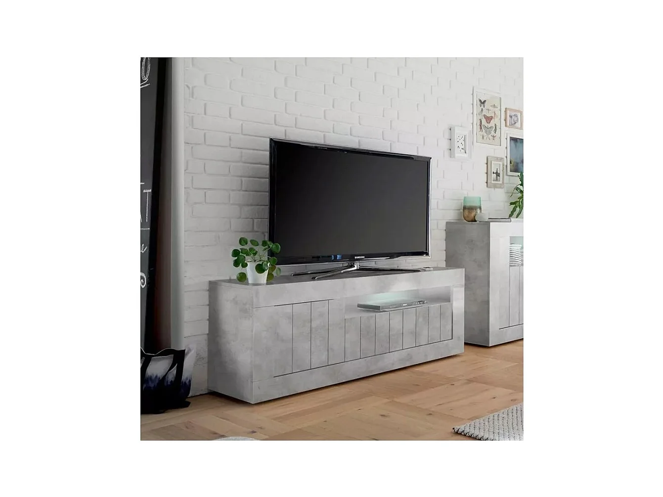 Meuble TV 3 portes battantes en bois, coloris béton, collection URBAN
