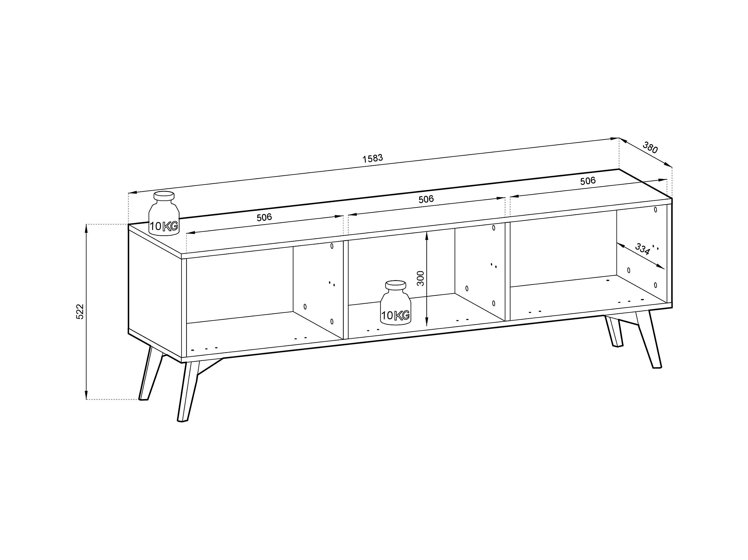 Meuble TV 3 portes en bois lamellé 158x52 cm